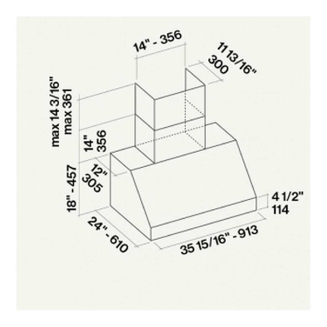 Hotte murale 36 po Inox - Zeus Pro NRS 600 CFM