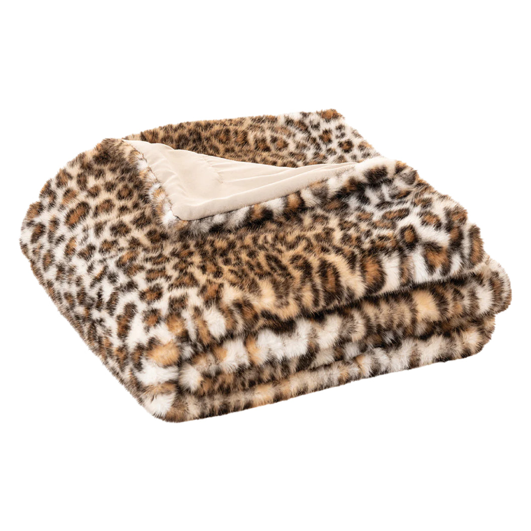 Jeté 50 x 60 po en fausse fourrure imprimé guépard brun - Cheetah