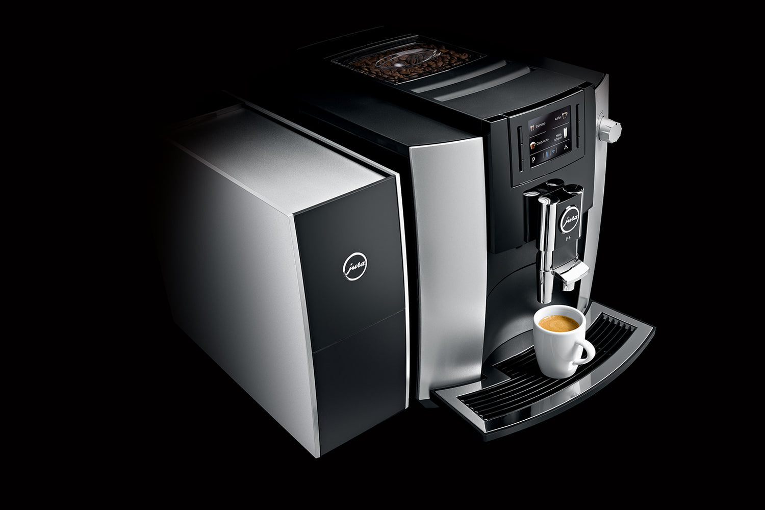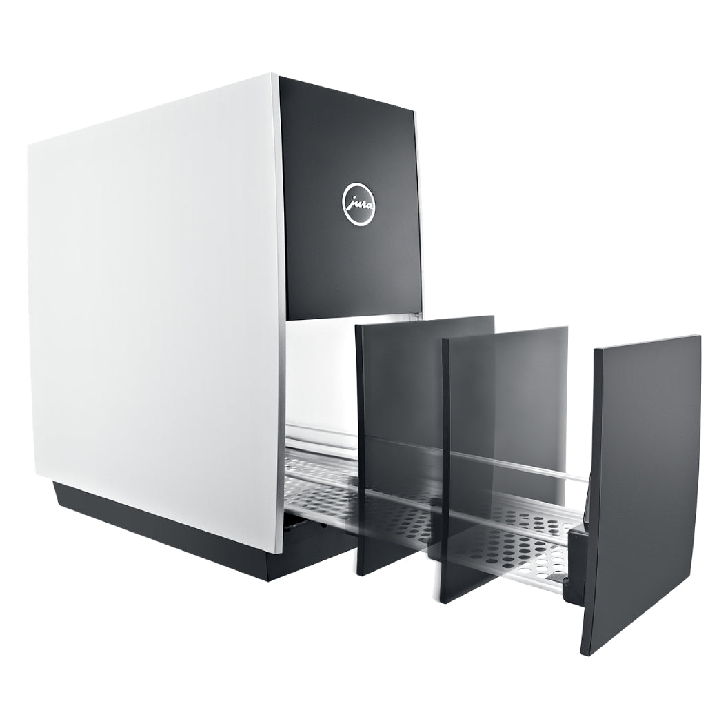 Finition sobre en inox et noir mat avec lignes épurées, il s’intègre parfaitement aux machines à café automatiques de la marque.