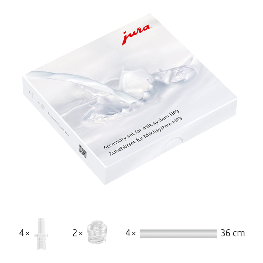Chaque ensemble comprend des tuyaux de lait découpables, des raccords et des buses d’aspiration parfaitement adaptés aux systèmes Jura. -