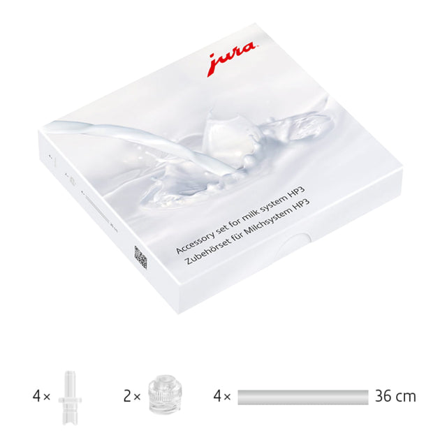 L'ensemble d’accessoires pour systèmes de lait Jura regroupe tous les composants nécessaires pour maintenir une hygiène irréprochable dans la préparation de vos boissons lactées. Conçu pour s’adapter au type de système de lait HP3, cet ensemble doit être remplacé environ tous les trois mois pour garantir un fonctionnement optimal. Il est indispensable pour préserver la qualité de la mousse de lait et assurer la longévité de votre machine automatique Jura.