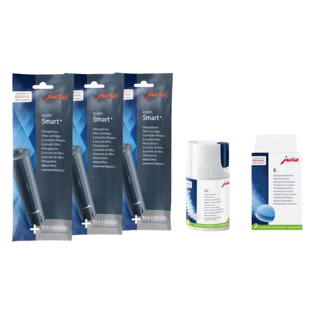 Comprend le détergent pour système lait Jura sous forme de mini-tablettes, pour une hygiène parfaite des conduits à lait. -