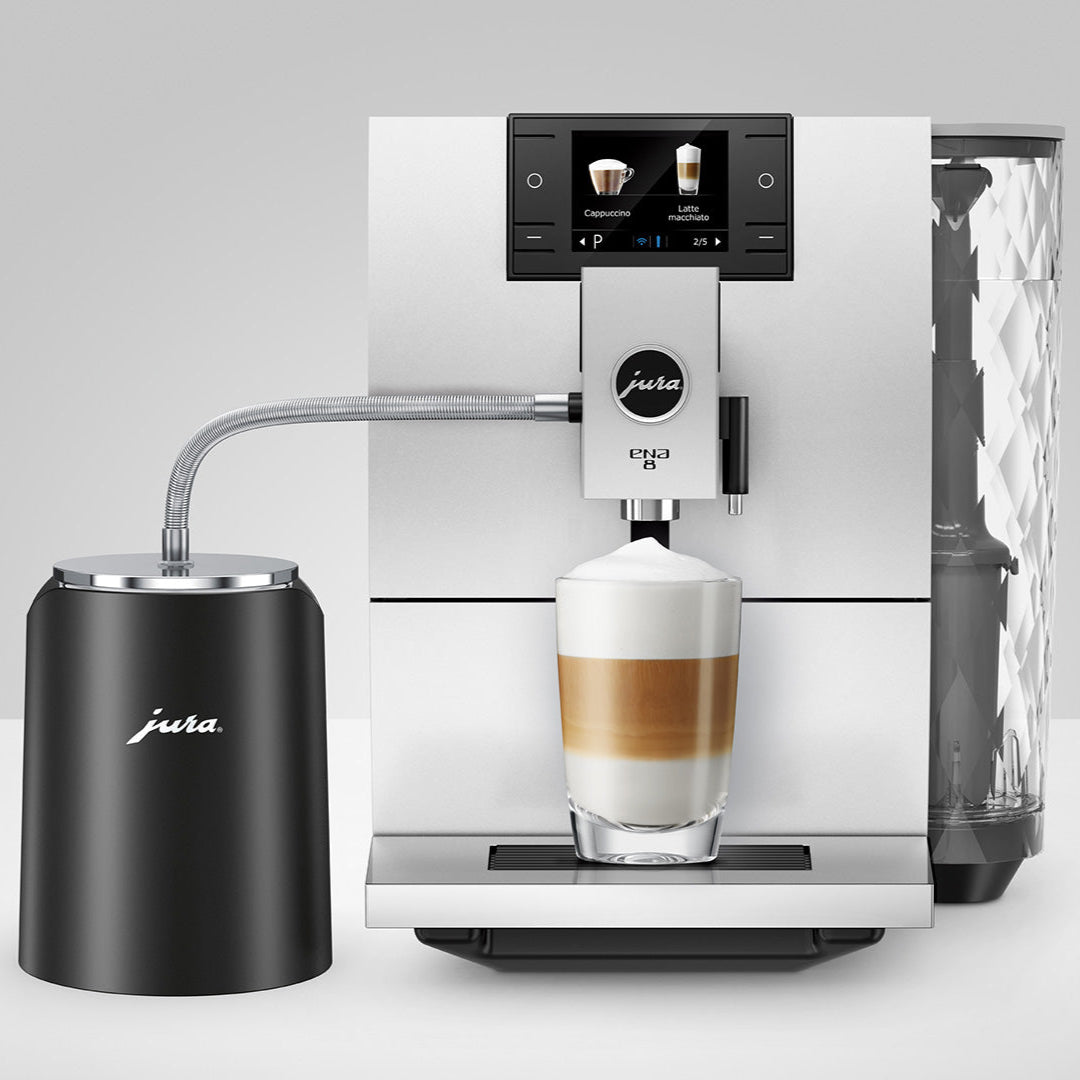 Sa finition noire mate élégante s’accorde parfaitement avec toutes les machines Jura pour une harmonie visuelle. -