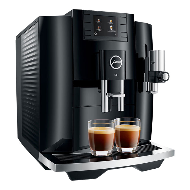 La Jura E8 est l’un des modèles les plus complets de la gamme, combinant une large palette de spécialités, une qualité d’extraction exceptionnelle et une utilisation intuitive. Grâce à ses technologies haut de gamme, comme le procédé d’extraction pulsée et le système de mousse fine, elle offre des cafés parfaitement équilibrés et des boissons lactées onctueuses, tasse après tasse. Son design élégant et sa finition noire brillante s’intègrent parfaitement à toutes les cuisines modernes.