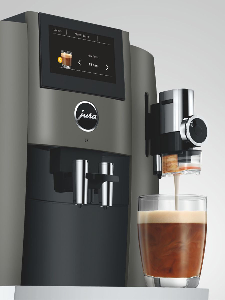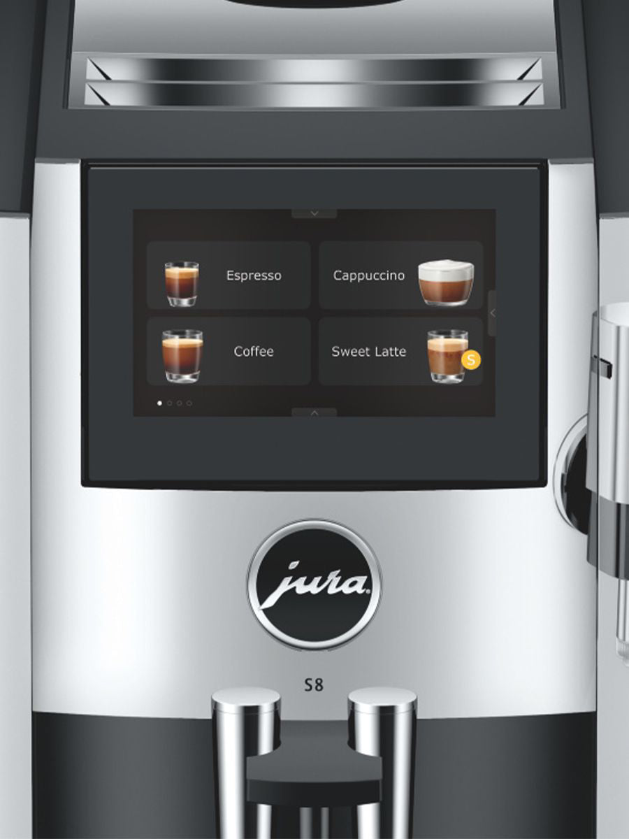 La Jura S8 allie design raffiné, interface tactile intuitive et technologie de pointe pour vous offrir une expérience café haut de gamme à domicile. Elle vous permet de savourer une large sélection de spécialités café avec une qualité digne des meilleurs baristas. Son design élégant et son écran tactile couleur de 4,3 po en font un véritable bijou technologique, aussi agréable à utiliser qu’à regarder. Chaque tasse révèle un arôme intense, une mousse parfaite et une constance remarquable, jour après jour.