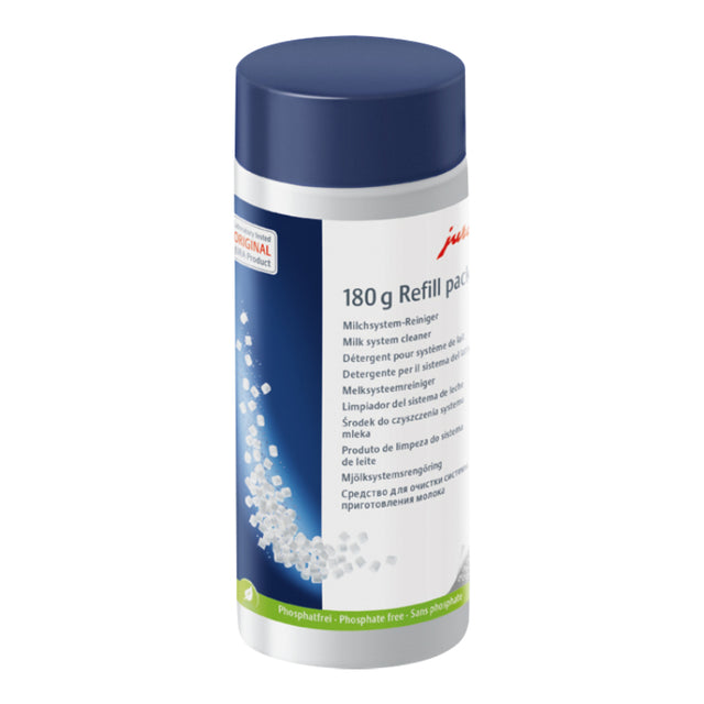 Les mini-tabs de détergent pour système de lait Jura sont conçues pour garantir une propreté irréprochable de tous les composants en contact avec le lait. Ce format économique de 180 g, sous forme de mini-tablettes, assure un dosage précis, une utilisation facile et un nettoyage en profondeur. Utilisée régulièrement, cette recharge prolonge la durée de vie de votre machine automatique Jura et maintient une qualité de mousse de lait constante.