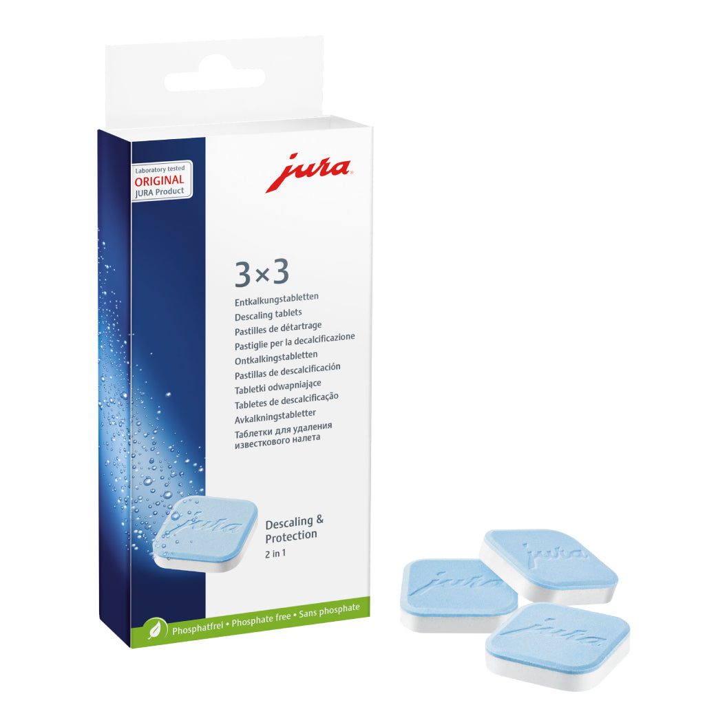 Un entretien régulier avec les comprimés JURA protège votre investissement en maintenant les performances de la machine sur le long terme. -