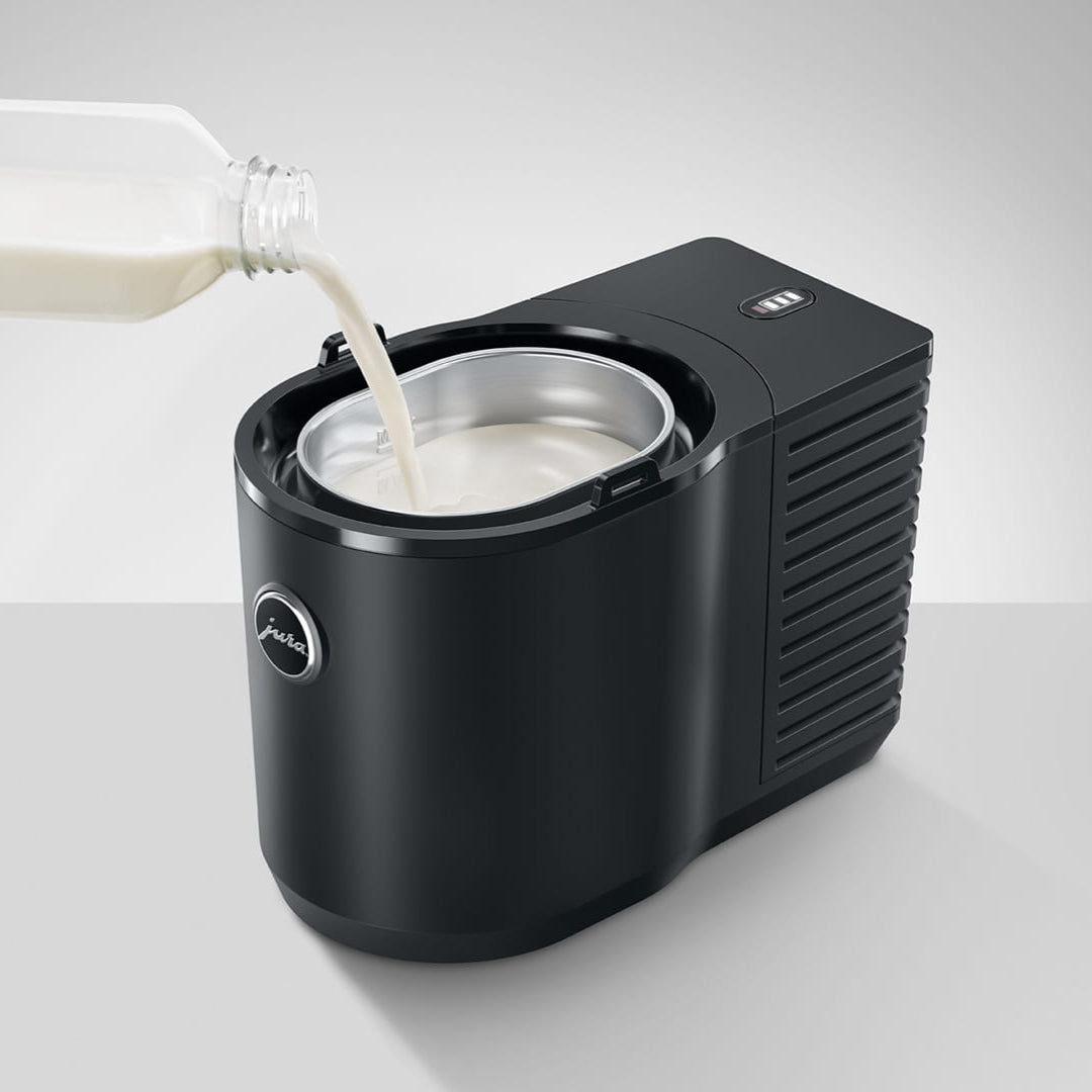 Le Jura Cool Control 1 L en finition noire mate est conçu pour répondre aux exigences des amateurs de cappuccinos et latte macchiatos. Grâce à son système de refroidissement actif à 4 °C, il conserve le lait à température idéale, garantissant une mousse fine et fraîche à tout moment. Avec son design moderne et ses fonctionnalités intelligentes, il complète parfaitement votre machine à café automatique Jura, à la maison comme au bureau.