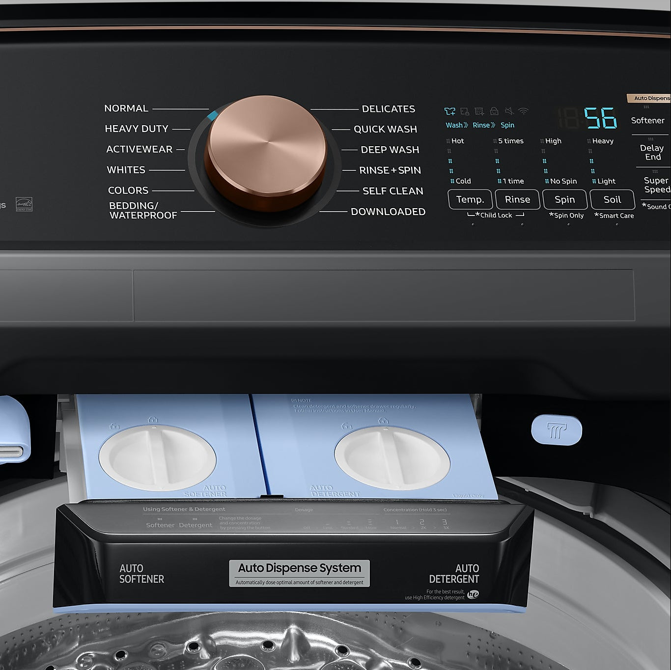 Permet de laver une brassée complète en moins de 30 minutes grâce à un puissant jet d’eau actif et un tambour plus large, pour une lessive rapide sans compromis. -