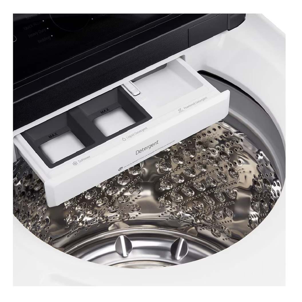 La LG WT8600CB combine une hyper grande capacité de 6,3 pi³ avec la porte EasyUnloadMC pour un accès plus ergonomique au fond de la cuve. Le réservoir ezDispenseMC dose automatiquement détergent et assouplissant pour enchaîner jusqu’à 14 à 25 brassées sans remplissage*. L’intelligence intégrée (IA DD) détecte la texture des tissus et la taille de la brassée afin d’ajuster les paramètres de lavage, tandis que TurboWash3DMC accélère les cycles sans compromettre le soin des fibres. La connectivité ThinQMD (Wi-Fi) facilite le démarrage à distance, le suivi de cycle et les notifications (dont le niveau d’ezDispenseMC). La cuve NeveRust en acier inoxydable, le moteur DirectDrive et TrueBalance contribuent à une performance durable, plus silencieuse et homologuée ENERGY STARMD.