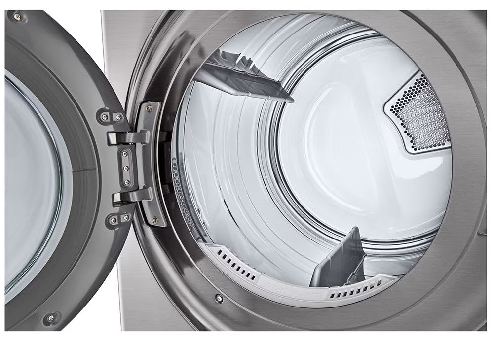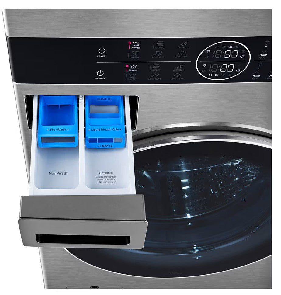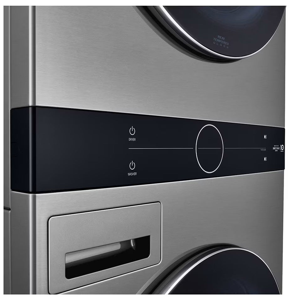 La LG WashTower™ WKEX200HVA combine laveuse de 5,2 pi³ et sécheuse électrique de 7,4 pi³ dans un format monobloc pensé pour maximiser l’espace. Son panneau de commande central offre un accès simplifié, évitant les gestes inconfortables. Son design haut de gamme en acier graphite et ses portes en verre trempé assurent robustesse et élégance, tandis que les tambours en acier inoxydable NeveRust™ protègent les tissus sur le long terme. Ce modèle permet un lavage rapide, efficace et économe en énergie, tout en réduisant le temps de manipulation du linge.