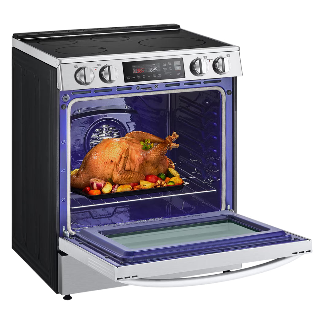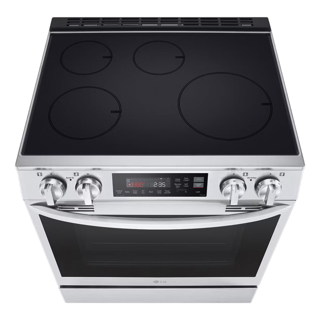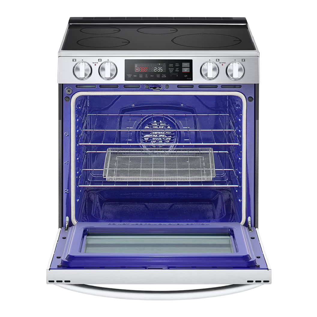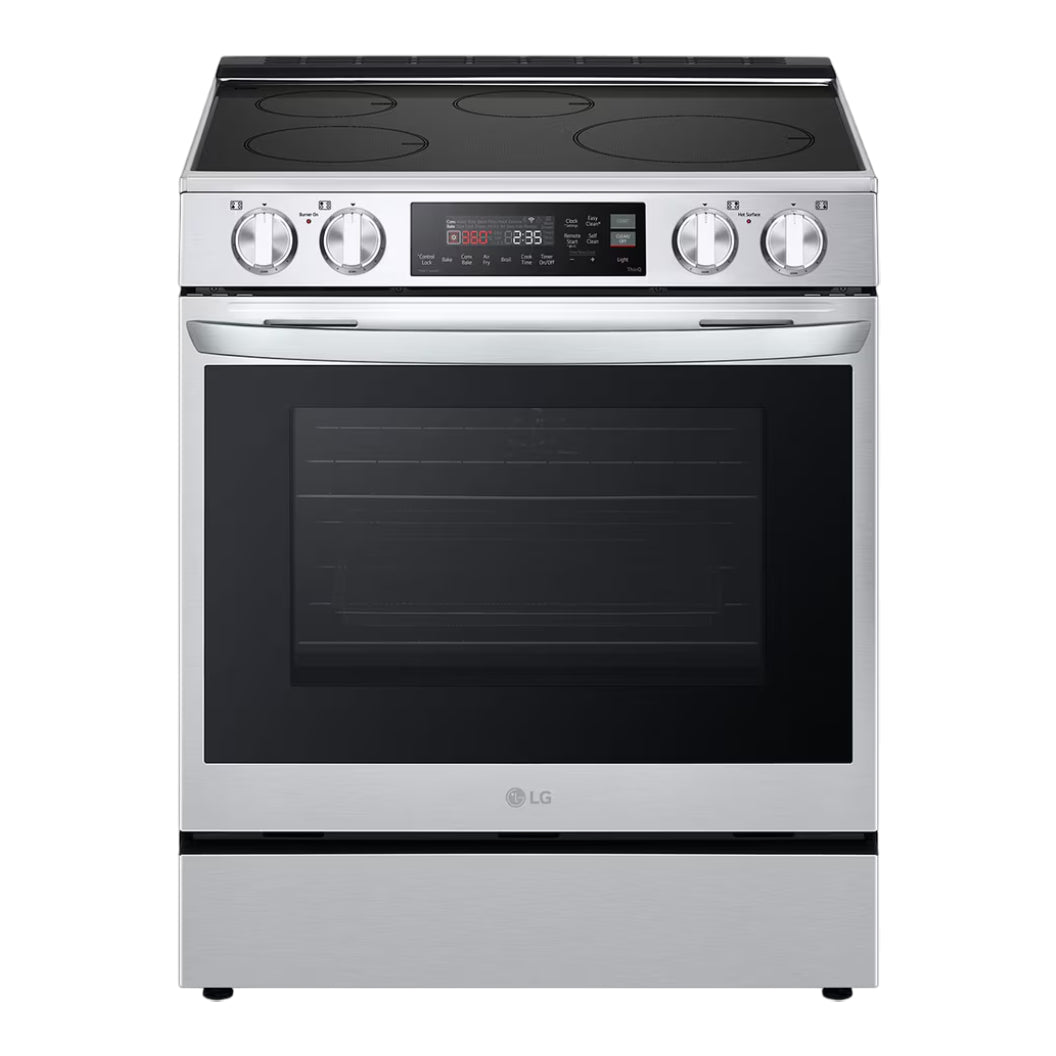 Conçue pour simplifier le quotidien, cette cuisinière est équipée d’un four à convection ProBake®, d’un mode friture à l’air intégré, et d’un système de nettoyage EasyClean® qui redonne de l’éclat à votre four en seulement 10 minutes. Grâce à la connectivité Wi-Fi, elle peut aussi être contrôlée à distance via l'application ThinQ® et répond aux commandes vocales compatibles avec Google Assistant et Alexa.