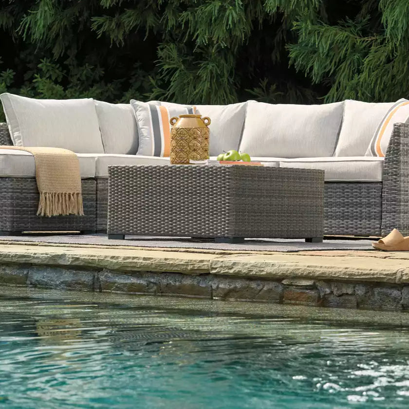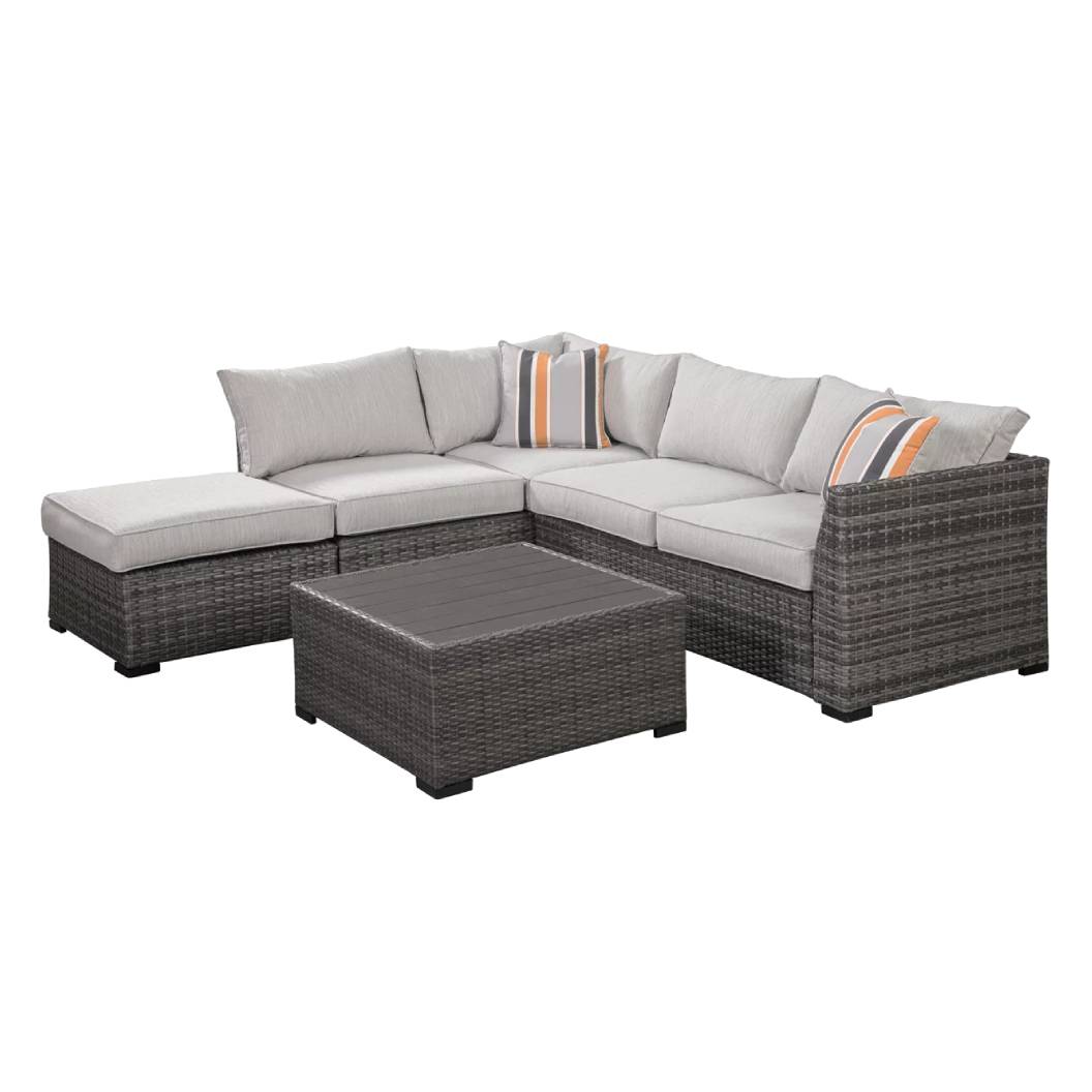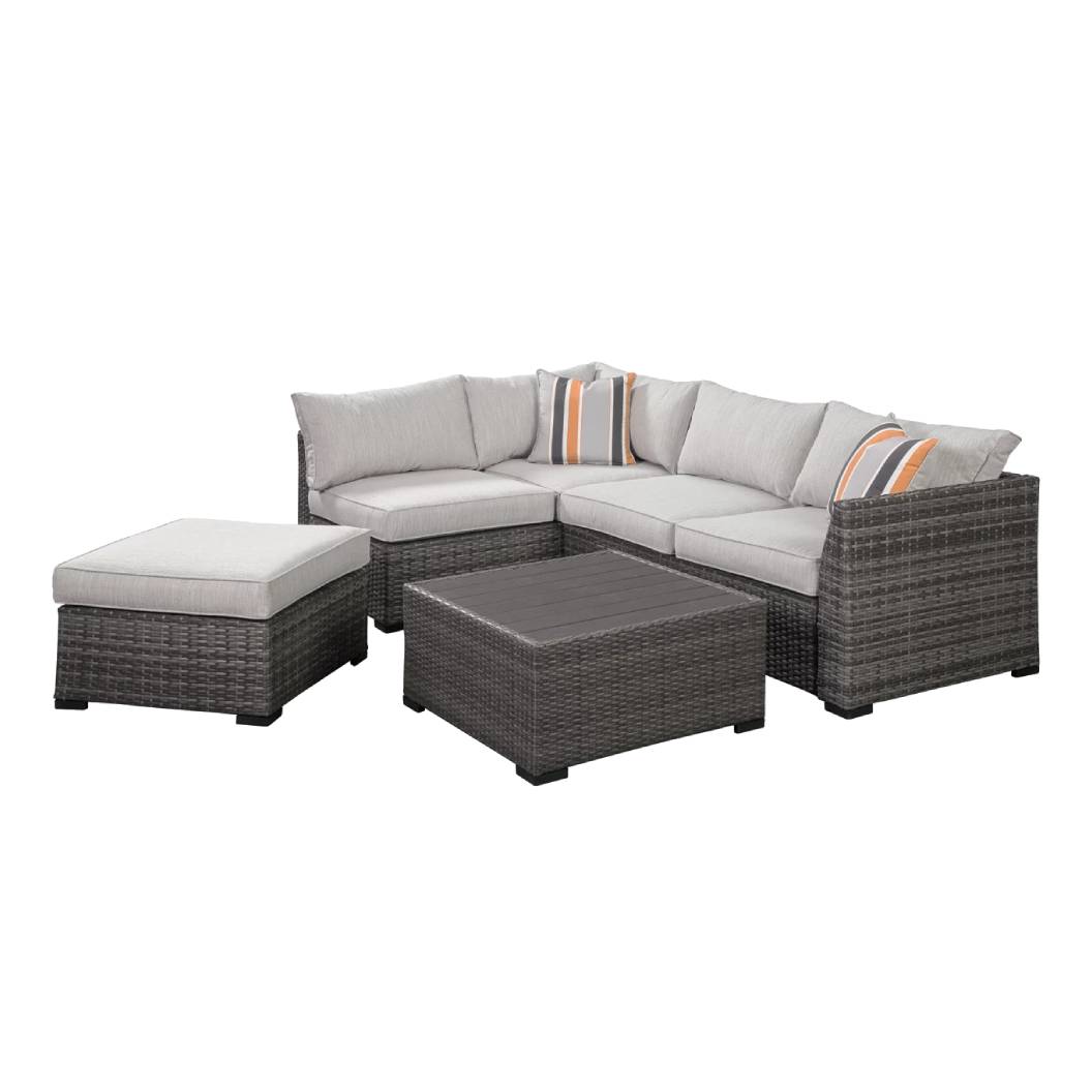L'ensemble extérieur Cherry Point – P301-070 transforme tout patio ou terrasse en une oasis de confort raffiné. Avec son design haut de gamme aux lignes épurées et son osier de résine gris tissé à la main, il marie parfaitement esthétisme et robustesse.