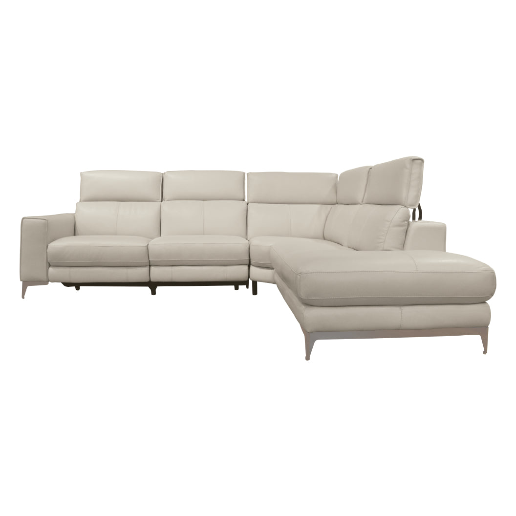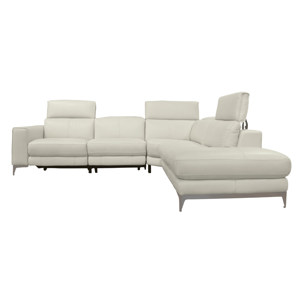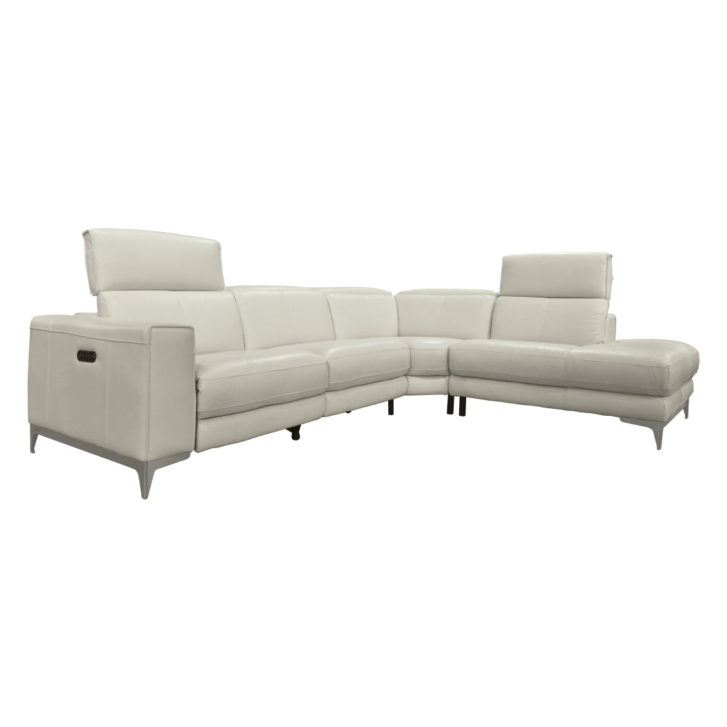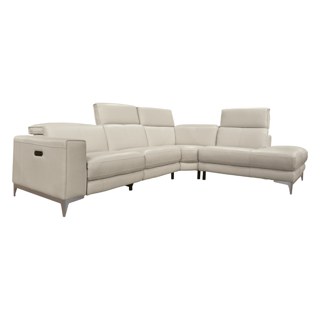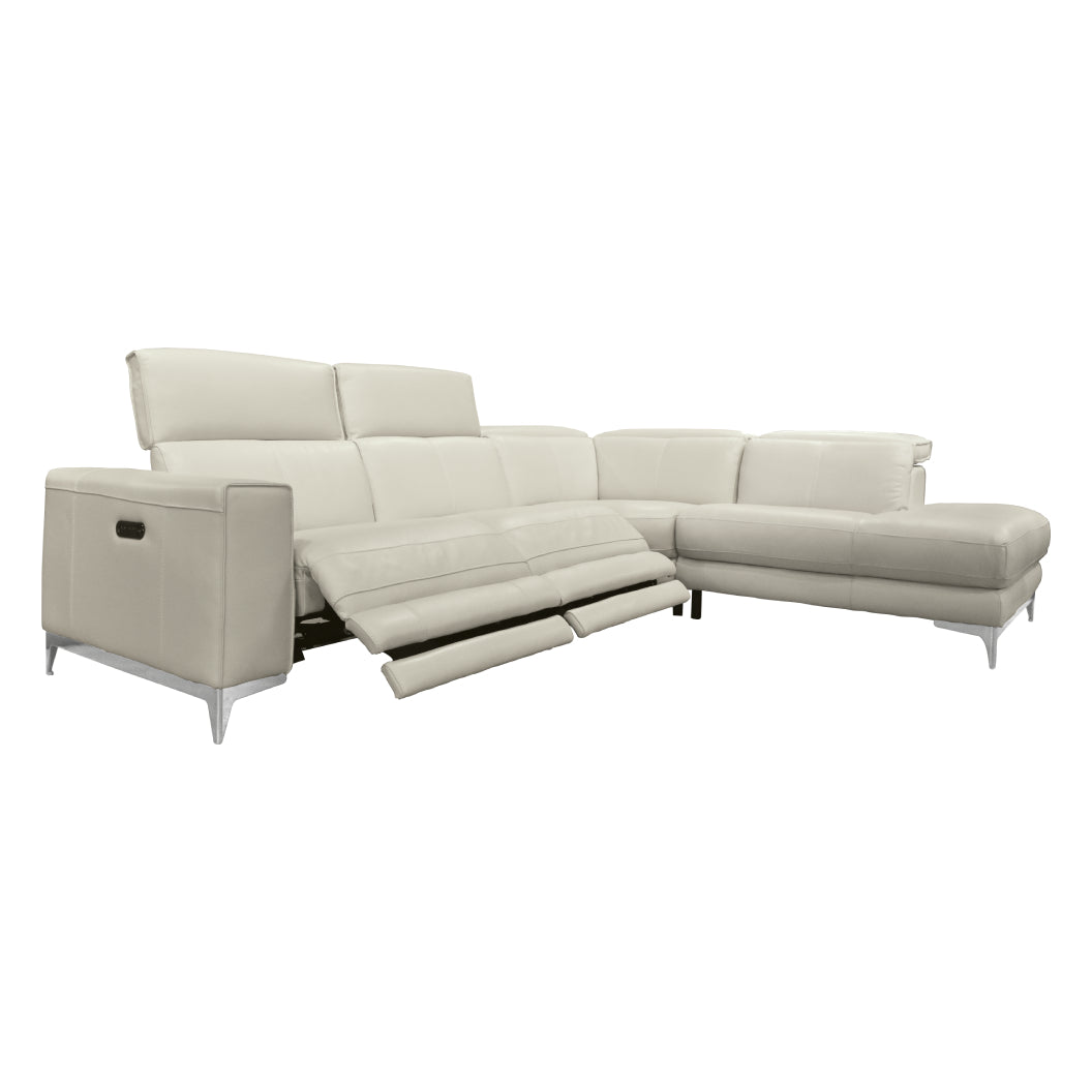 Sectionnel motorisé 3 pièces en cuir gris avec chaise longue