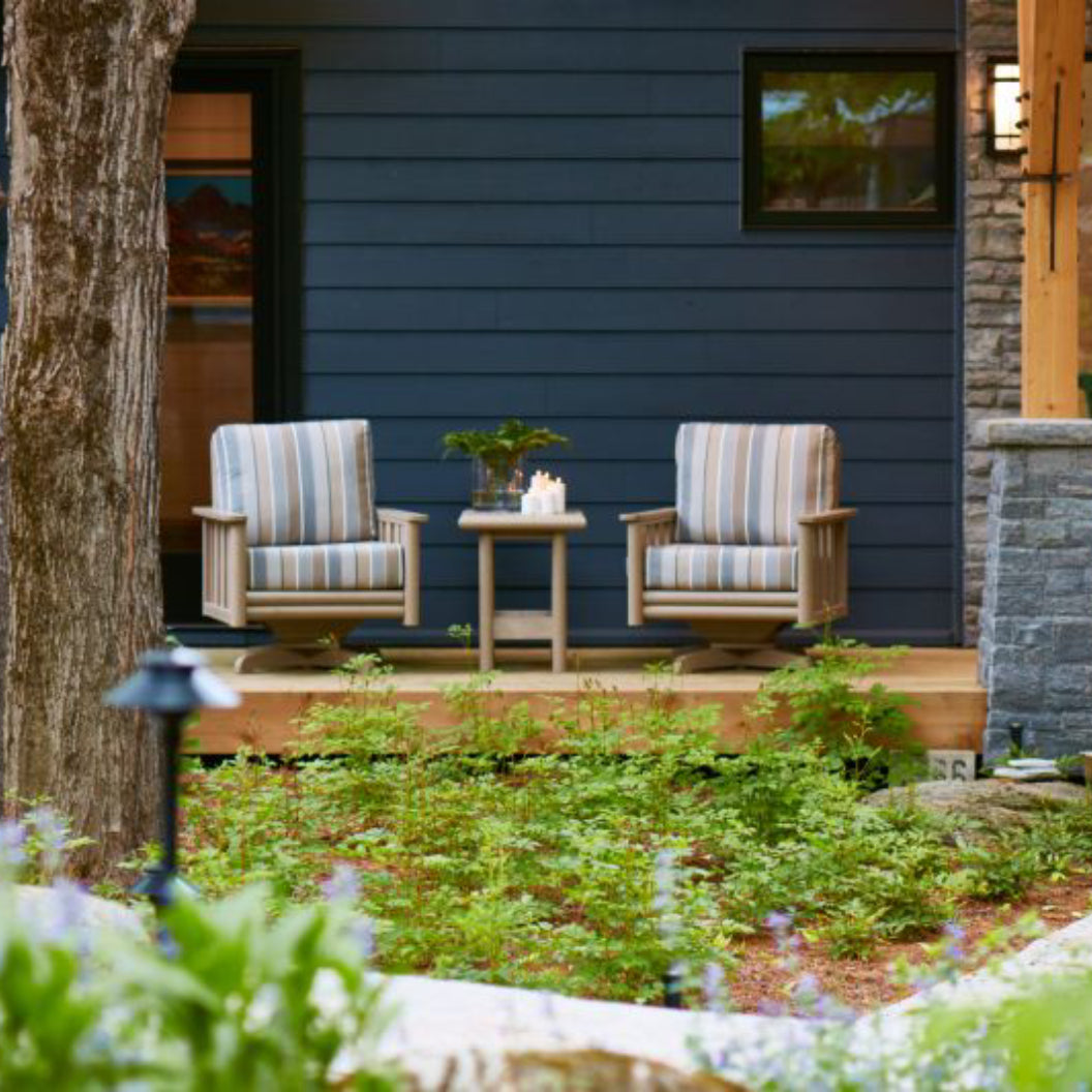 Le fauteuil pivotant Stratford DSF264 de C.R. Plastic avec son design classique, souligné par des finitions bullnose distinctives, s’intègre naturellement à une grande variété d’aménagements extérieurs. Le mouvement pivotant améliore le confort d’utilisation et facilite les échanges, autant dans un cadre résidentiel que commercial. Ce modèle est offert avec plusieurs options de couleurs pour la structure et les coussins, permettant de créer un ensemble harmonieux et cohérent.
