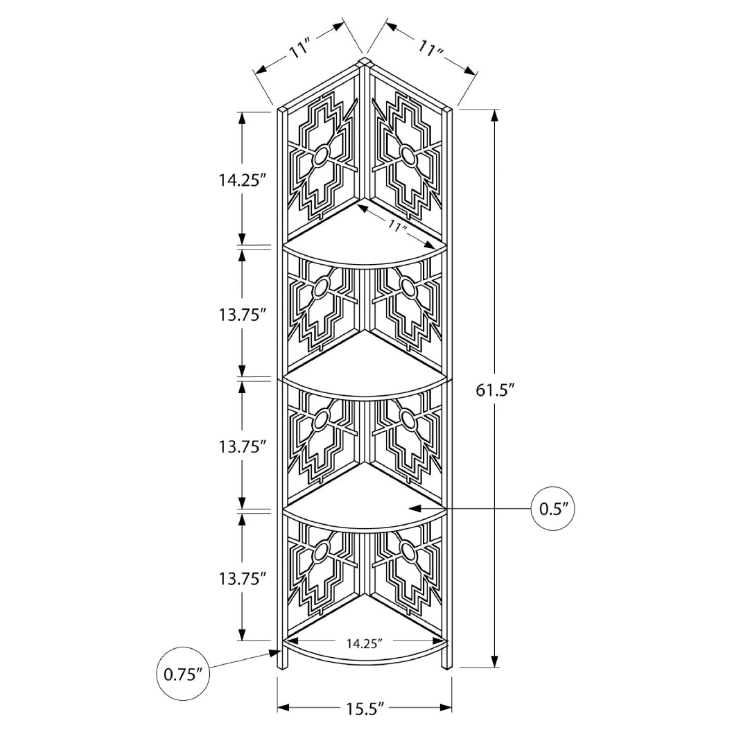 L’étagère de coin I 3621/3622/3623 de Monarch offre une solution pratique et élégante pour optimiser un espace souvent inutilisé. Sa structure élancée permet d’ajouter du rangement dans une cuisine, un salon, une chambre ou un bureau, tout en donnant un style raffiné à votre décor. Ses quatre tablettes vous permettent d’exposer aisément plantes, photos et accessoires décoratifs, tout en conservant une allure discrète et bien organisée.