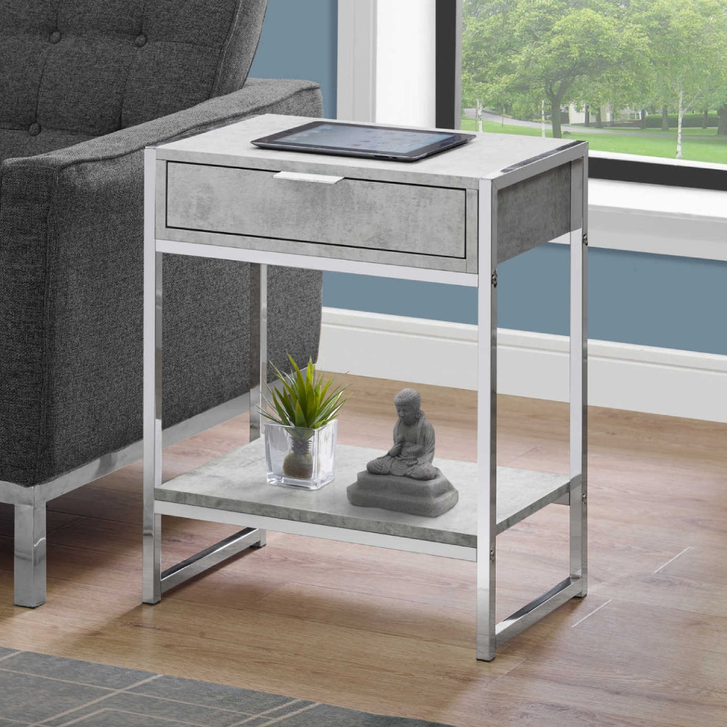 Table d'appoint en MDF/stratifié et métal chromé avec 1 tiroir - I 3480-3481