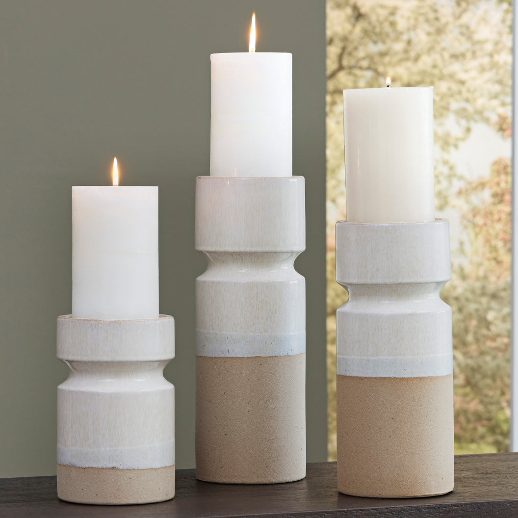 Ensemble de 3 bougeoirs en céramique ivoire & brun clair - Hurston
