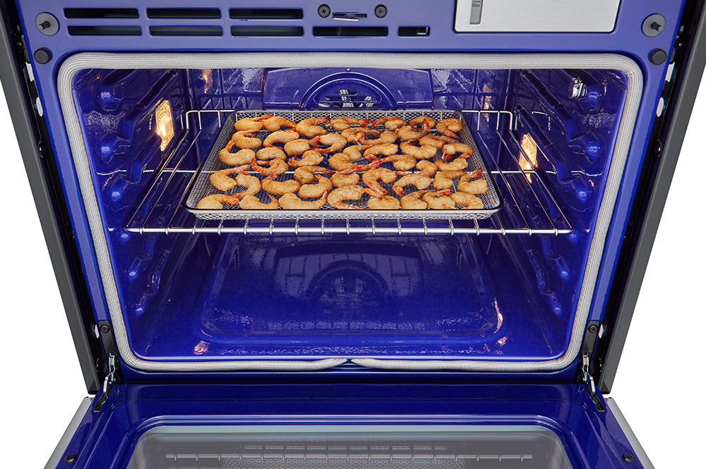 - Air Fry intégré : permet de frire sans huile directement dans le four, pour des plats croustillants et plus sains.
