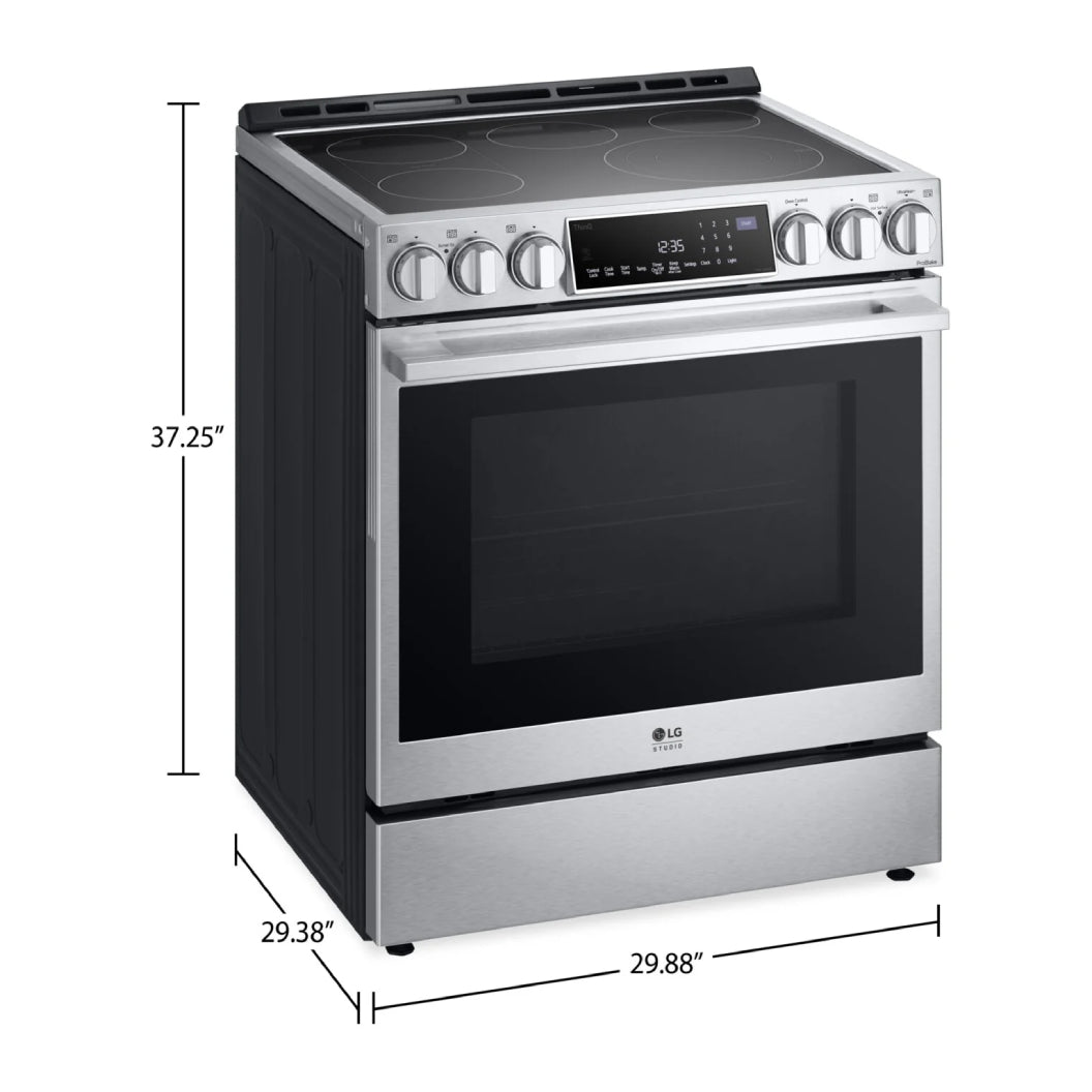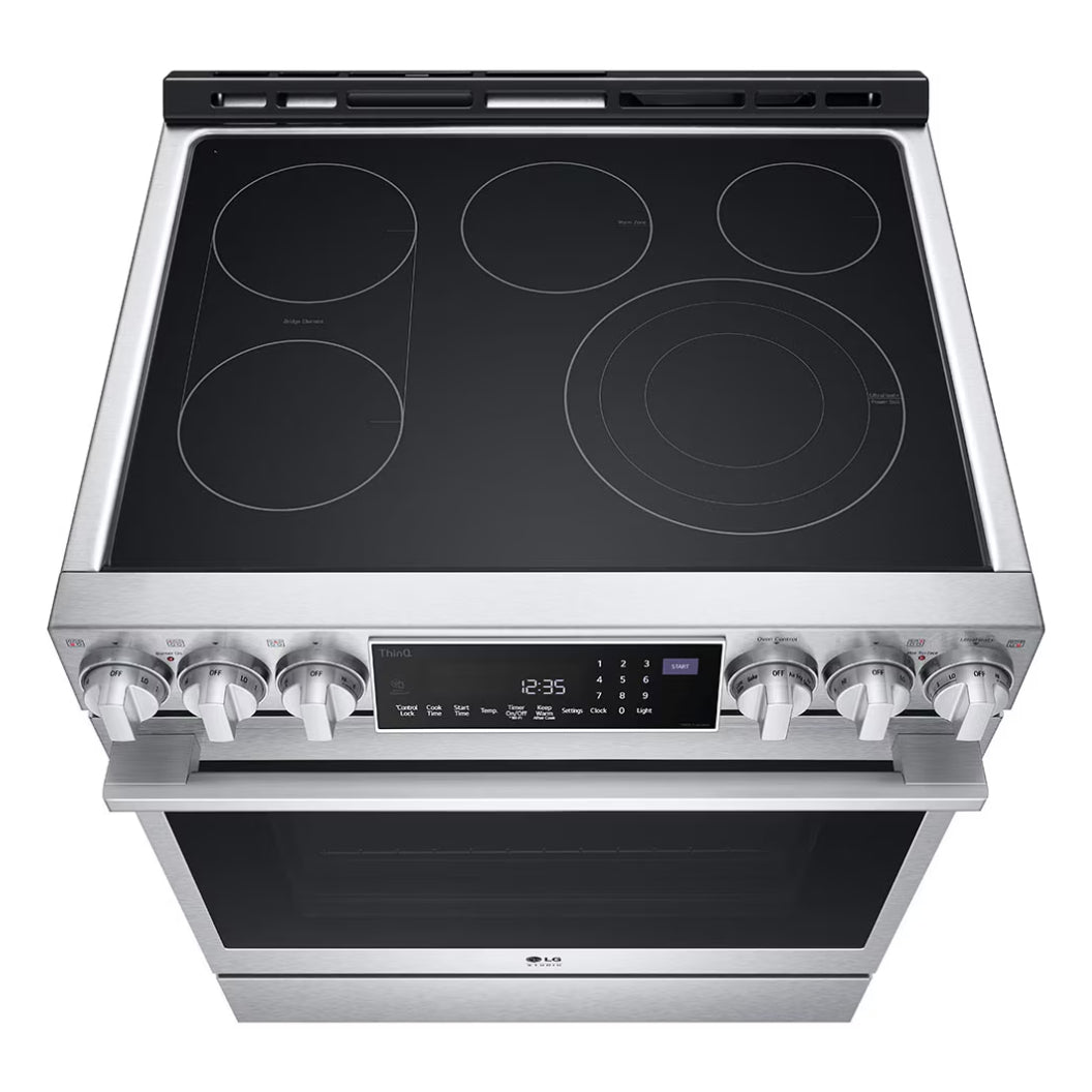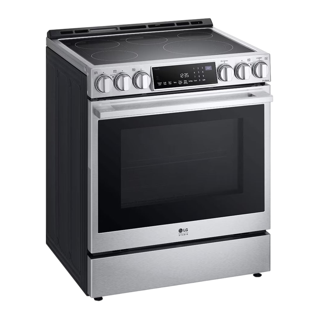 La cuisinière électrique intelligente LG Studio LSES6338F combine puissance, capacité et polyvalence pour répondre aux besoins des cuisiniers exigeants. Sa finition en acier inoxydable PrintProof™ résistant aux taches et son design élégant s’intègrent parfaitement dans les cuisines modernes. Avec une capacité généreuse de 6,3 pi³, elle permet de préparer facilement des repas complets pour la famille ou de grandes tablées. Ses modes de cuisson avancés, dont Air Fry et Air Sous Vide, garantissent des résultats professionnels, tandis que la technologie ProBake Convection® assure une cuisson homogène sur plusieurs niveaux. La fenêtre InstaView® offre un contrôle visuel instantané sans perte de chaleur, et la compatibilité avec l’application ThinQ® permet un pilotage à distance pour un confort optimal.