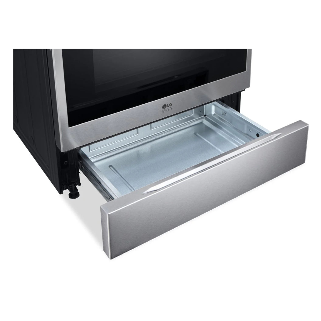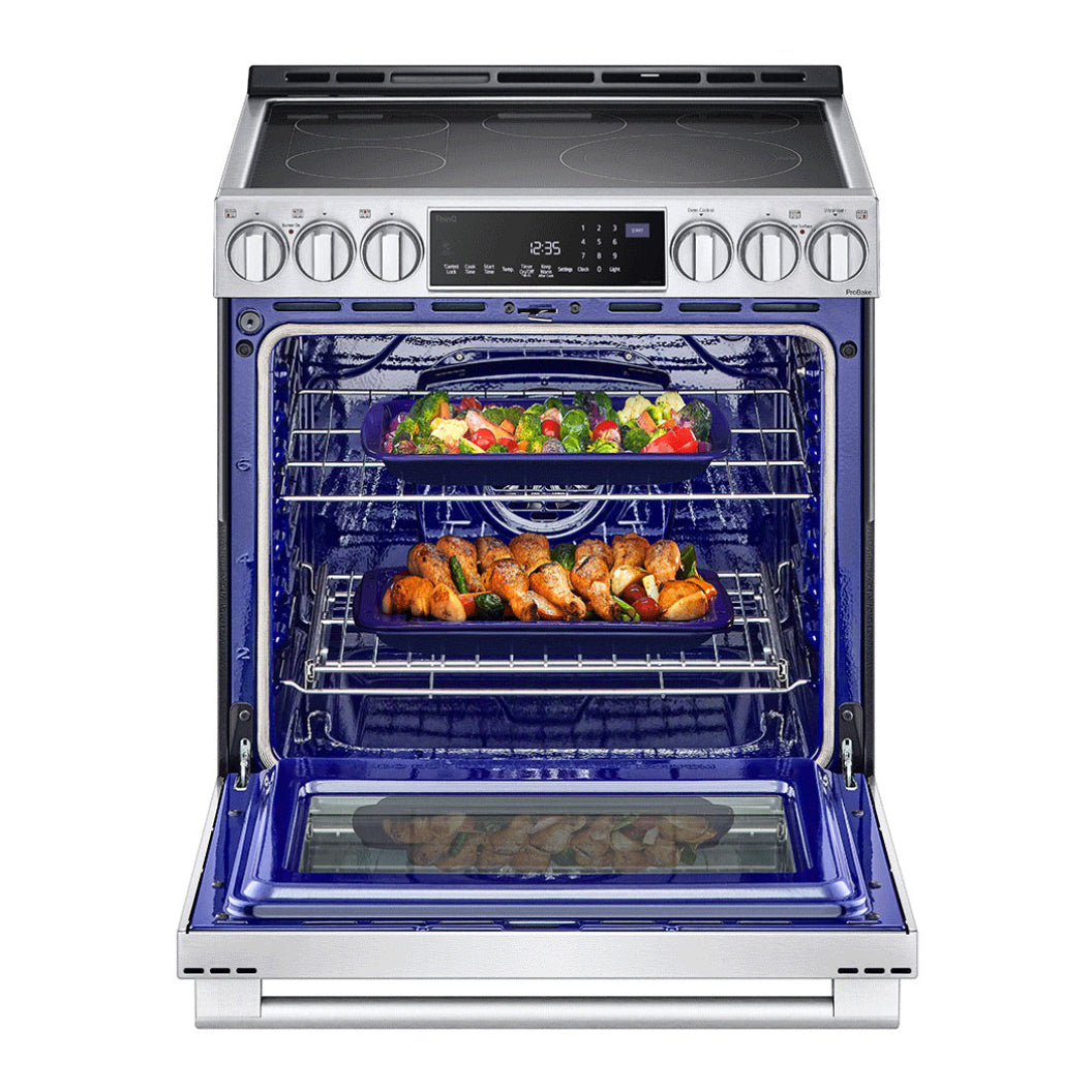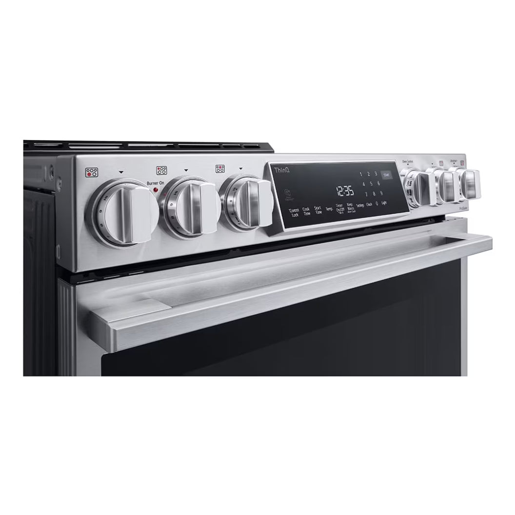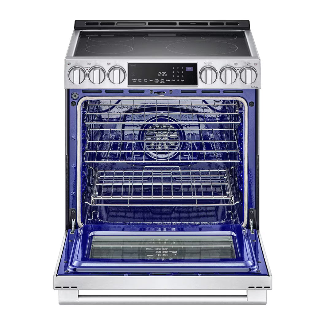 La cuisinière électrique intelligente LG Studio LSES6338F combine puissance, capacité et polyvalence pour répondre aux besoins des cuisiniers exigeants. Sa finition en acier inoxydable PrintProof™ résistant aux taches et son design élégant s’intègrent parfaitement dans les cuisines modernes. Avec une capacité généreuse de 6,3 pi³, elle permet de préparer facilement des repas complets pour la famille ou de grandes tablées. Ses modes de cuisson avancés, dont Air Fry et Air Sous Vide, garantissent des résultats professionnels, tandis que la technologie ProBake Convection® assure une cuisson homogène sur plusieurs niveaux. La fenêtre InstaView® offre un contrôle visuel instantané sans perte de chaleur, et la compatibilité avec l’application ThinQ® permet un pilotage à distance pour un confort optimal.