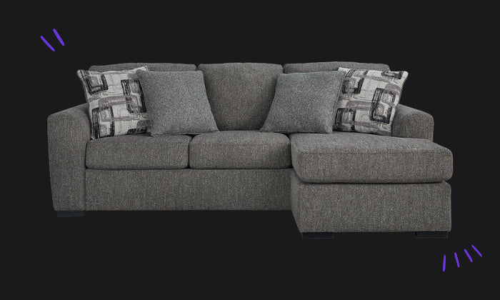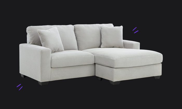 Sofa en velours côtelé noir avec chaise longue & coussins - Gabbyleigh