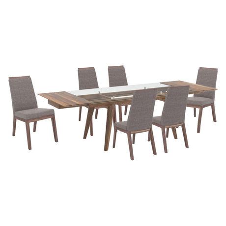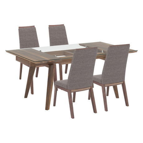 Chaise de salle à manger rembourrée en tissu gris et en bois de noyer fumé - Jane
