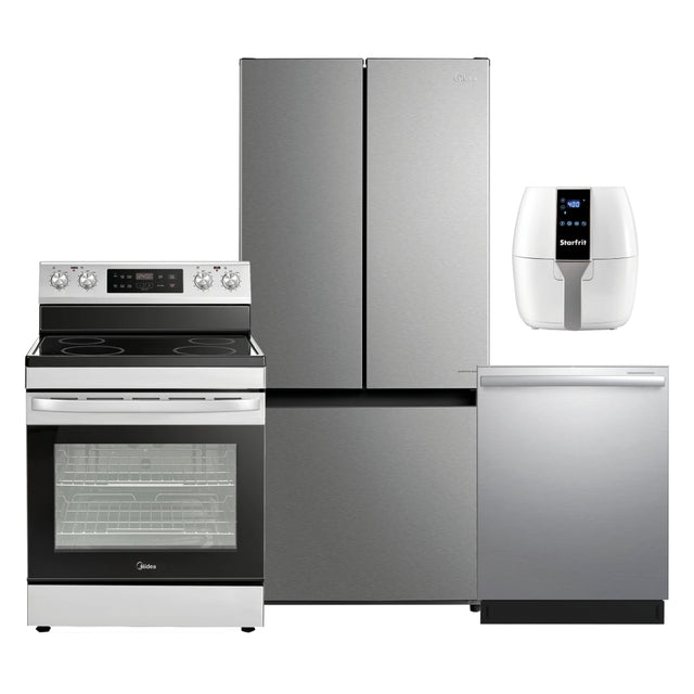 Optimisez votre quotidien en cuisine avec cet ensemble d’électroménagers Midéa et Startfrit, pensé pour la fonctionnalité et l’efficacité. La cuisinière MER30B14ASTC offre une cuisson homogène et fiable pour tous vos repas. Elle s’intègre parfaitement à la cuisine avec le lave-vaisselle MDT24H14ASTC, qui assure un nettoyage puissant et silencieux après chaque utilisation. Le réfrigérateur MRF18B4AST complète le trio avec son espace de rangement généreux et sa conservation optimale des aliments. Enfin, la friteuse à air Startfrit 6985824606 permet de préparer rapidement des plats croustillants, avec peu ou pas d’huile.