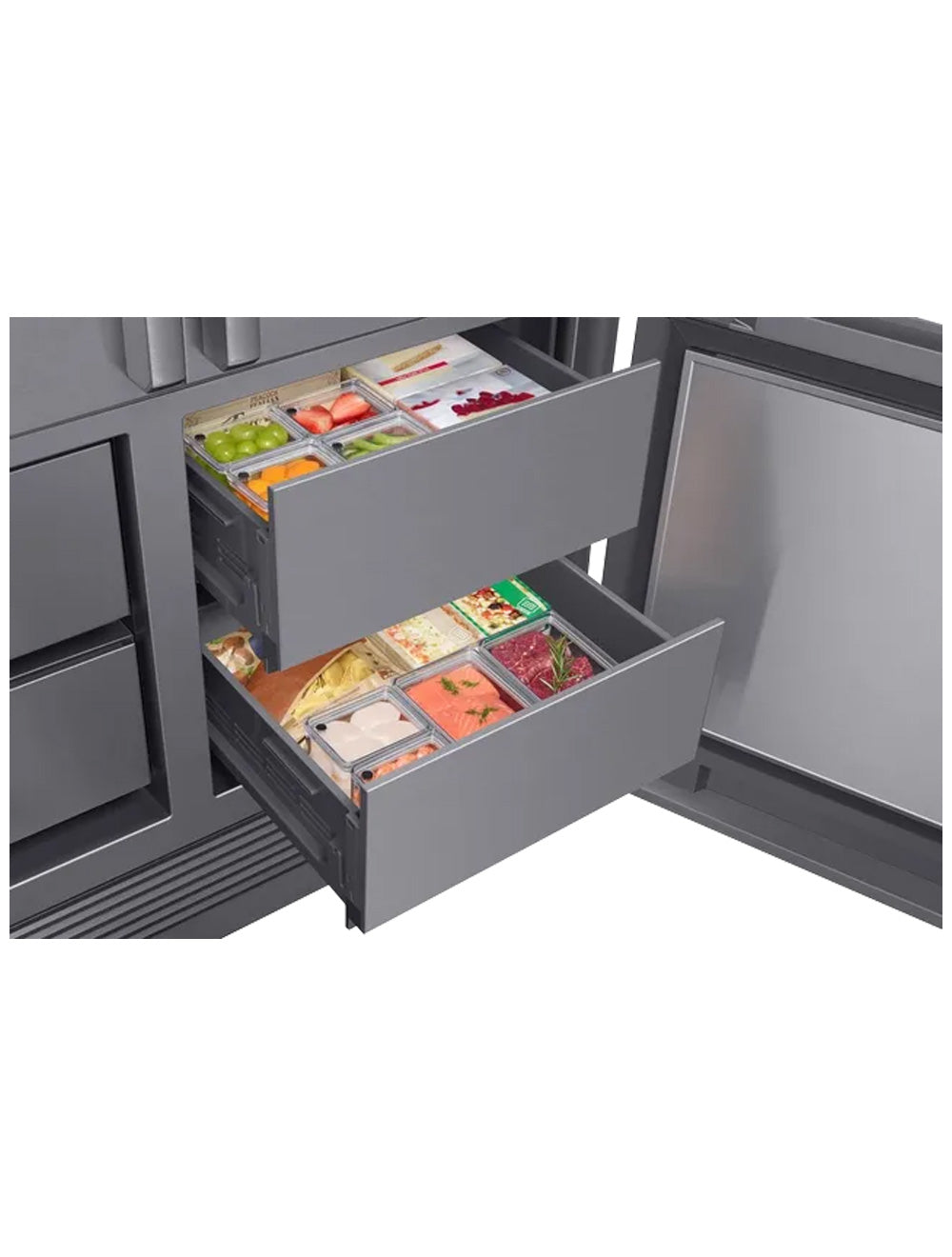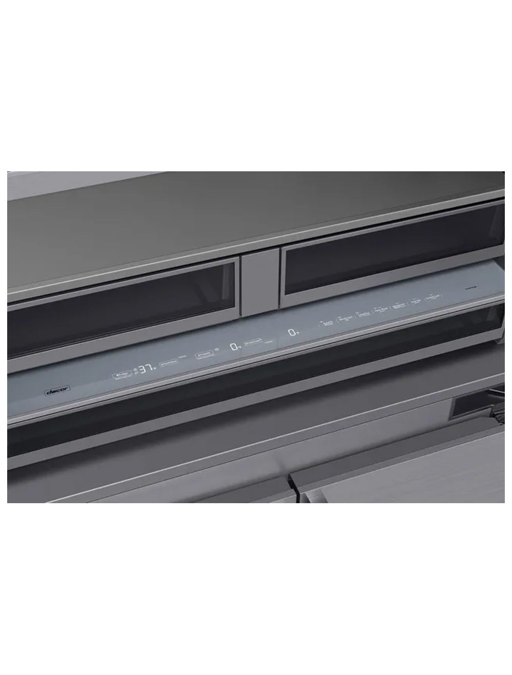 Le tiroir de rangement pleine largeur offre un contrôle optimal de la température pour tout ranger, de la viande et du poisson aux boissons fraîches ou à la charcuterie. Les réglages de température réglables incluent la possibilité de décongeler des articles en toute sécurité dans un espace contrôlé.
