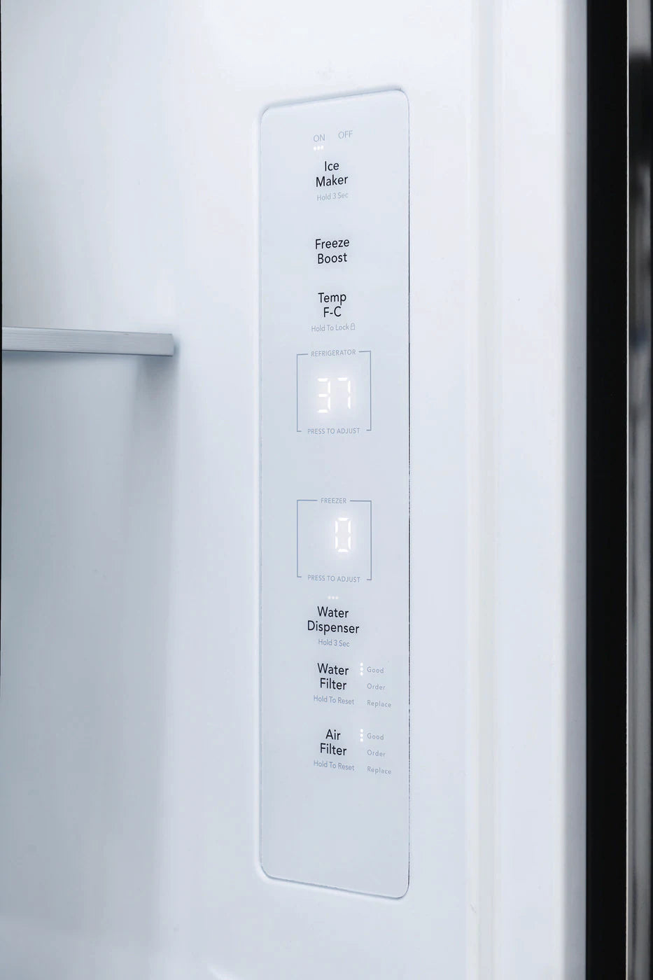 - Commandes intelligentes : affichage numérique, indicateurs de filtres (eau/air), marche/arrêt de la fabrique de glace.