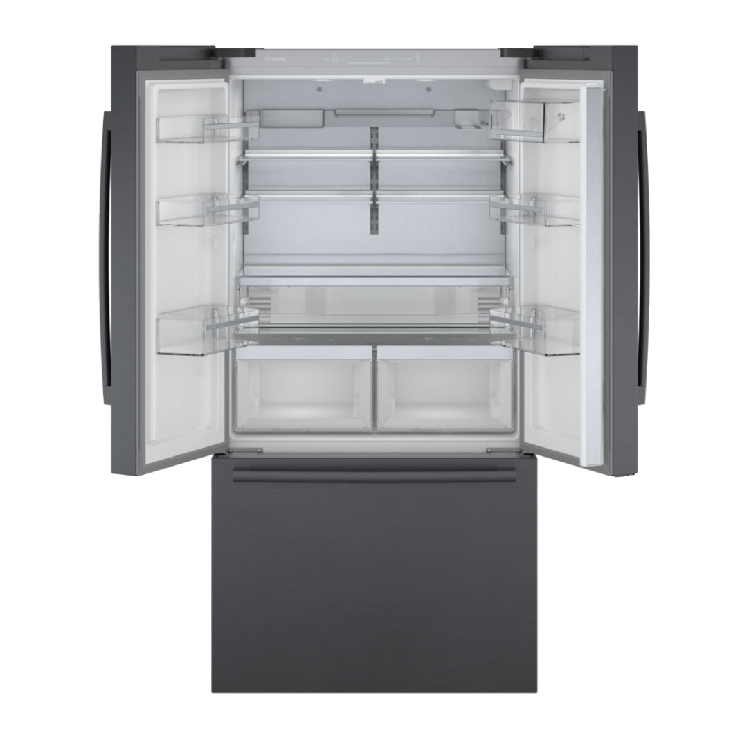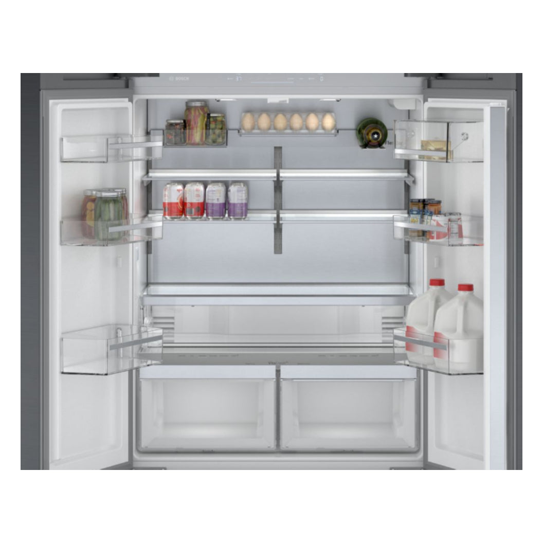 Le réfrigérateur porte française Bosch B36CT80SNB de la série 800 allie design haut de gamme en acier inoxydable noir brossé anti-traces et performance de conservation supérieure. Doté de deux compresseurs et deux évaporateurs distincts, il offre un refroidissement précis tout en réduisant le transfert d’odeurs entre les compartiments. Sa capacité généreuse et son distributeur d’eau filtrée dissimulé à l’intérieur maximisent l’espace utile et l’ergonomie. Homologué ENERGY STAR®, il répond aux exigences d’efficacité énergétique les plus élevées, tout en intégrant une alerte de porte entrouverte pour une sécurité accrue.