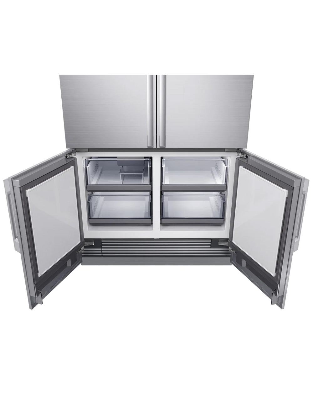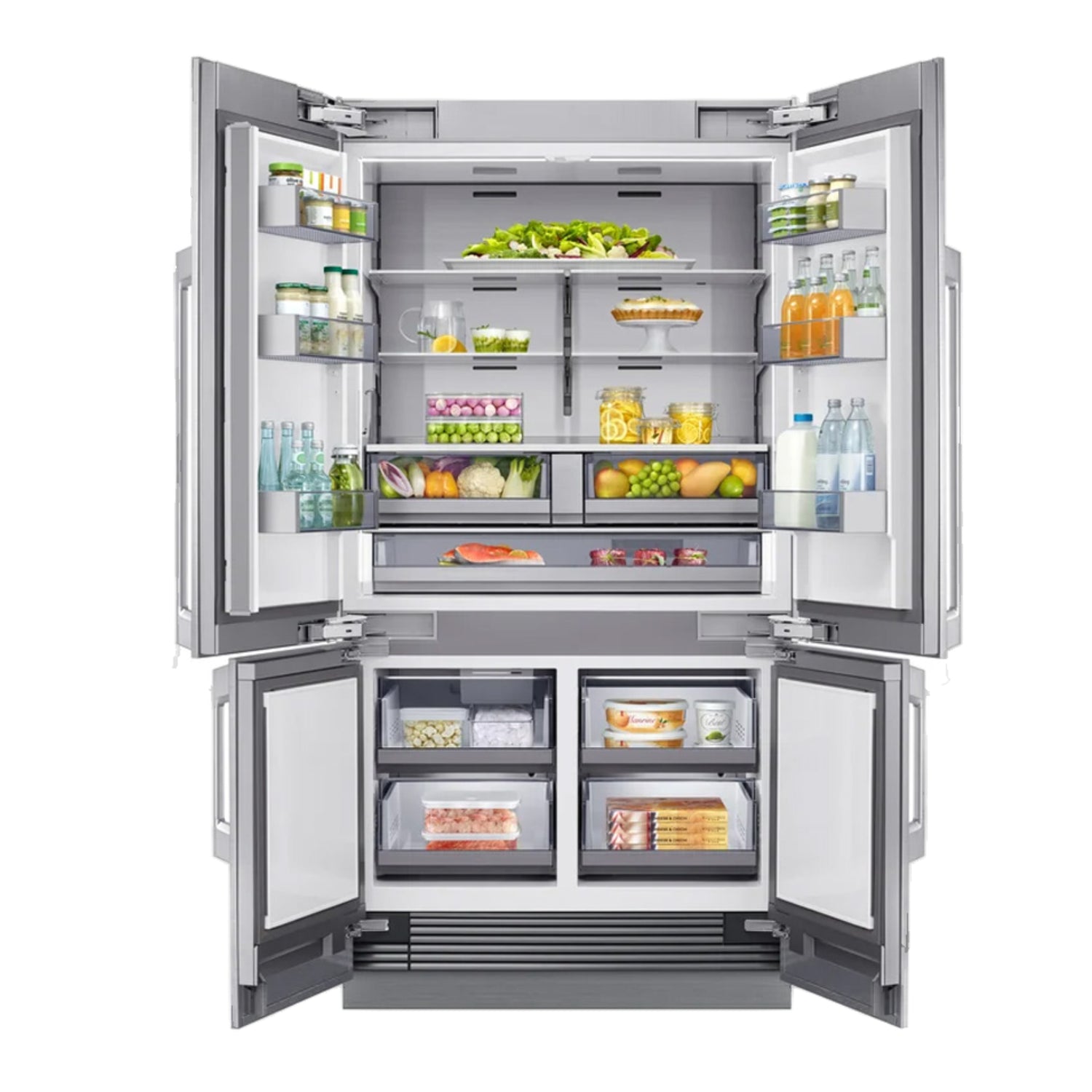 Alimenté par deux compresseurs à inverseur numérique et trois évaporateurs pour garder les aliments frais plus longtemps en empêchant le mélange d'air humide du réfrigérateur avec l'air sec du congélateur. En plus de la capacité de contrôle variable du compresseur à onduleur numérique, ils sont en mesure d'obtenir une humidité plus élevée dans l'espace du réfrigérateur.