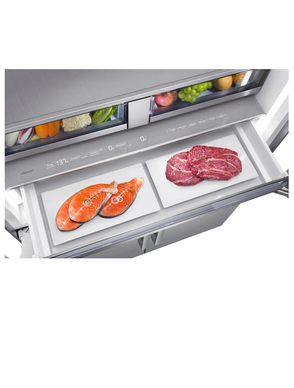 Le tiroir de rangement pleine largeur offre un contrôle optimal de la température pour tout ranger, de la viande et du poisson, des boissons fraîches ou de la charcuterie. Les réglages de température réglables incluent la possibilité de décongeler en toute sécurité des articles dans un espace contrôlé.
