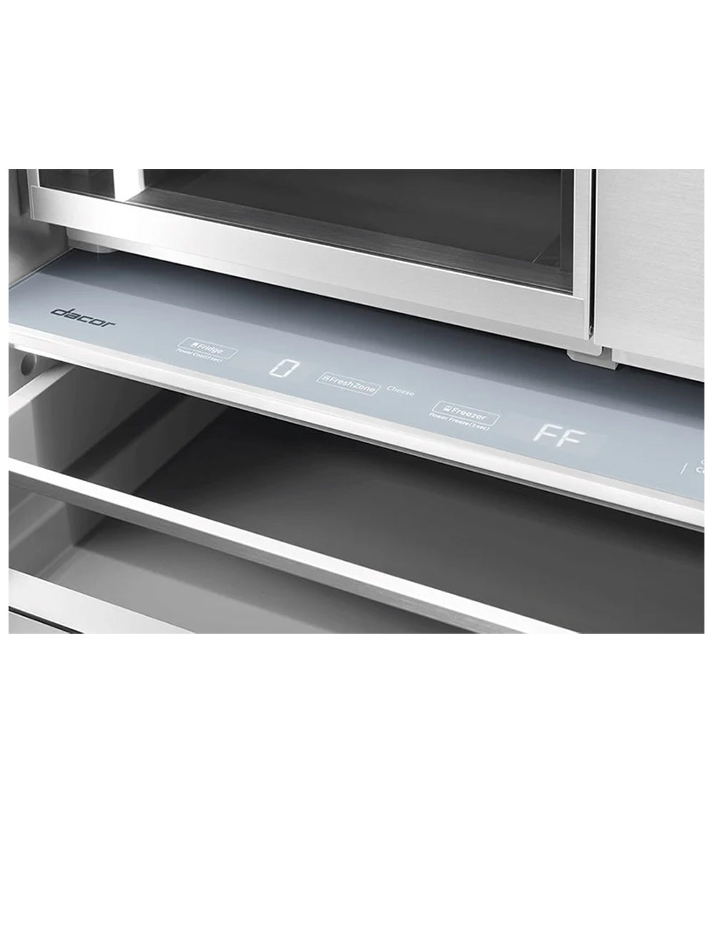 Chaque réfrigérateur Dacor dispose d'un système de refroidissement indépendant et totalement séparé pour maintenir d'excellents niveaux d'humidité. En plus de la capacité de contrôle variable du compresseur à onduleur numérique, ils sont en mesure d'obtenir une humidité plus élevée dans l'espace du réfrigérateur pour assurer la fraîcheur.