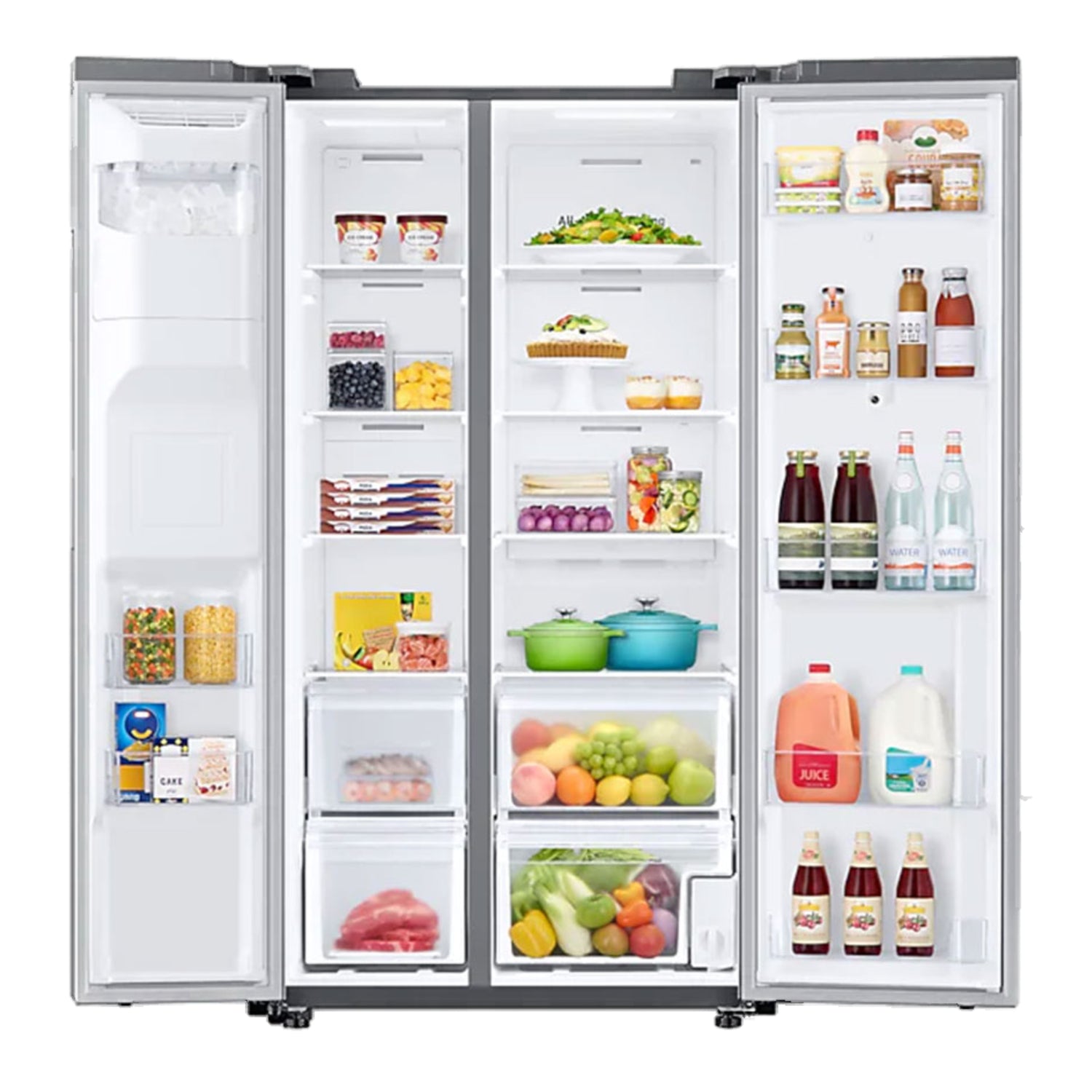Faites le plein de nourriture avec un énorme espace de rangement. SpaceMax TechnologyTM crée plus d'espace à l'intérieur sans augmenter les dimensions externes ou compromettre l'efficacité énergétique. De plus, la machine à glaçons d'intérieur vous offre un espace de stockage supplémentaire en libérant de l'espace sur les étagères du congélateur tout en faisant beaucoup de glace.