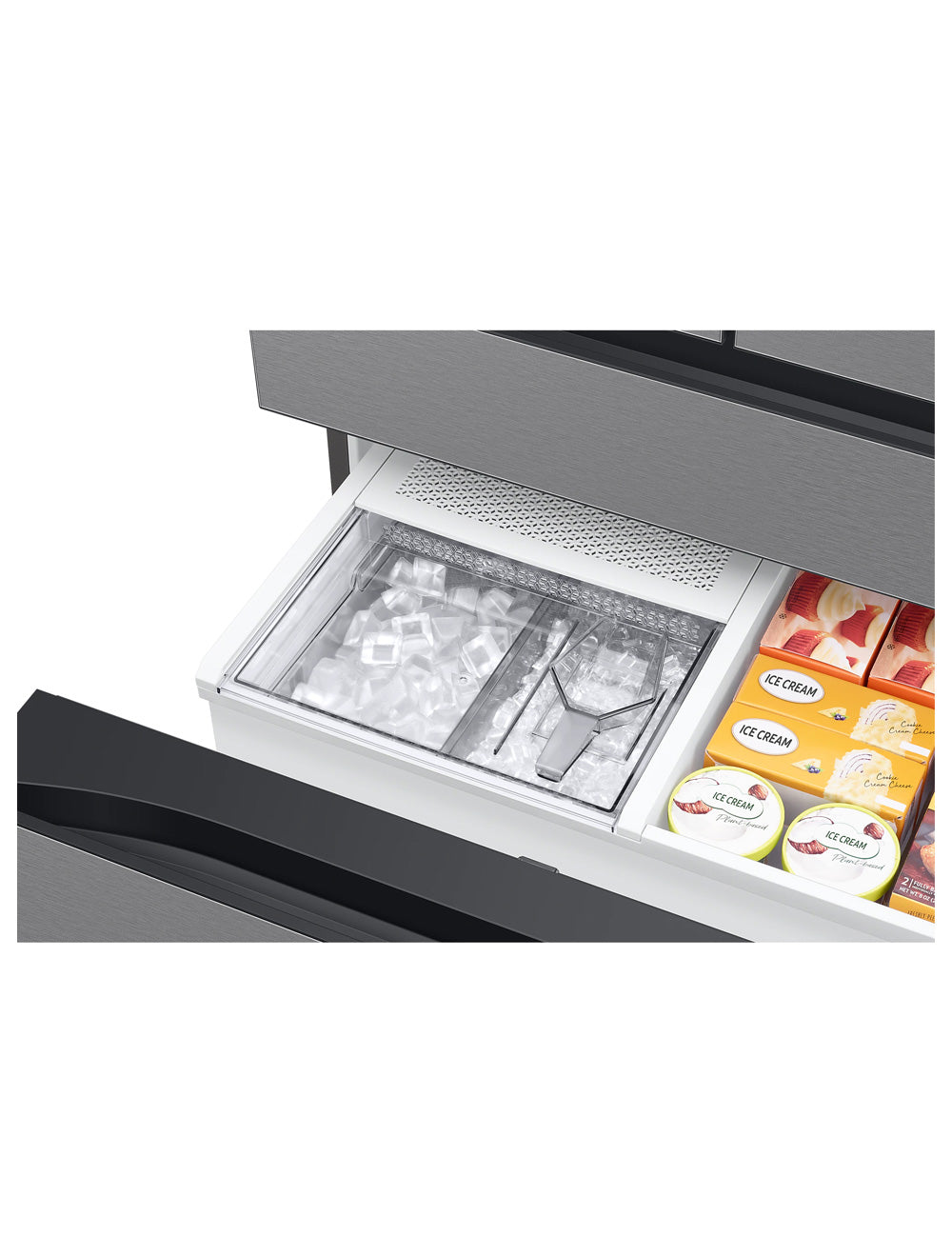 Assurez-vous d'être toujours prêt pour toutes les occasions avec deux types de glace différents. La machine à glaçons automatique double fabrique à la fois de la glace en cubes et des bouchées de glace, qui refroidissent les boissons beaucoup plus rapidement.