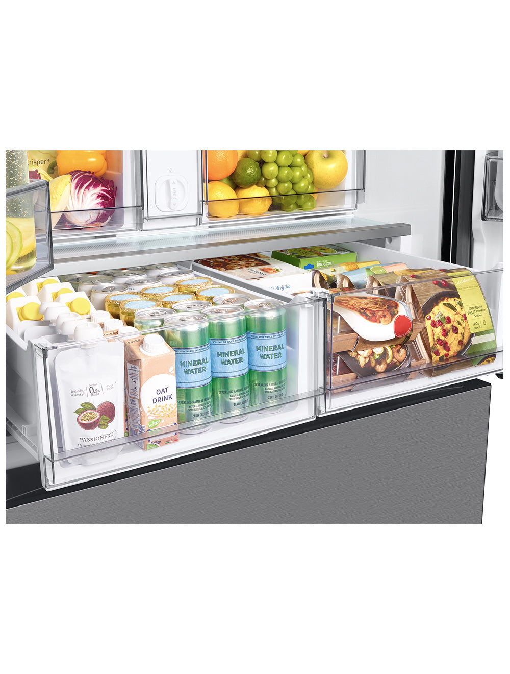 Faites particulièrement attention aux aliments délicats. Le New Big Pantry est un tiroir séparé qui vous permet de stocker beaucoup plus de viande, de volaille et de poisson, y compris des articles de grande taille. Vous pouvez également stocker différents types d'articles emballés, tels que des plats préparés, des kits de repas. Même les canettes de boissons peuvent être stockées debout.