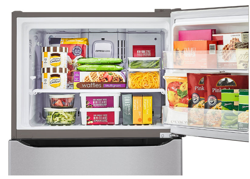 Ce réfrigérateur classique avec congélateur en haut à une capacité de 20 pi³ et 30 po de largeur a beaucoup à offrir. Son style sophistiqué en fait un chef de file de sa catégorie. Son système de commandes électroniques de la température contrôle les niveaux de température et d’humidité pour garder les aliments frais.