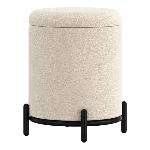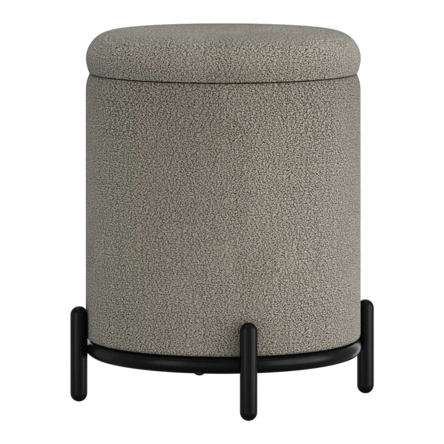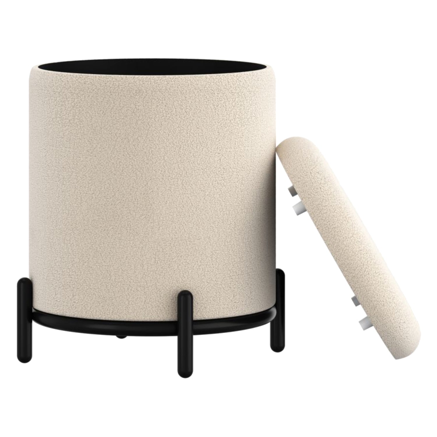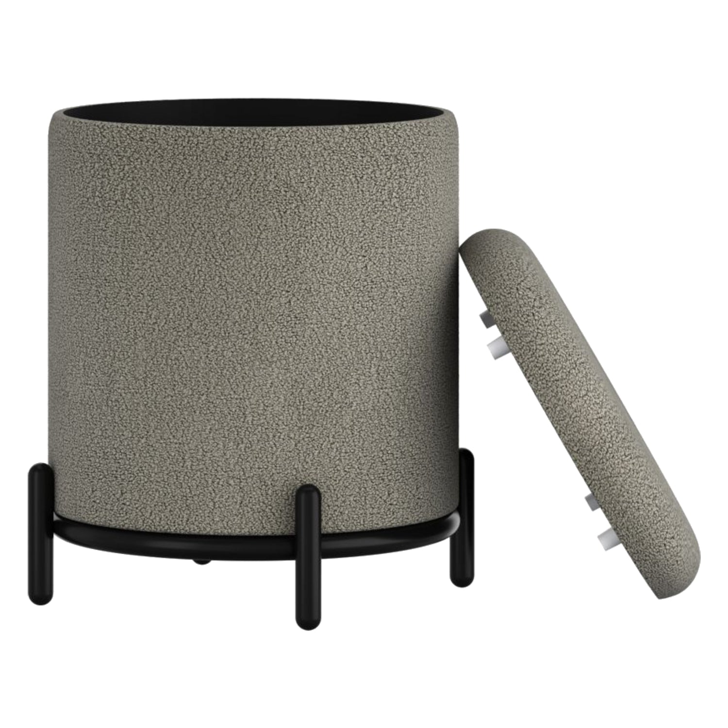 Pouf de rangement en tissu bouclé et métal noir - Castor