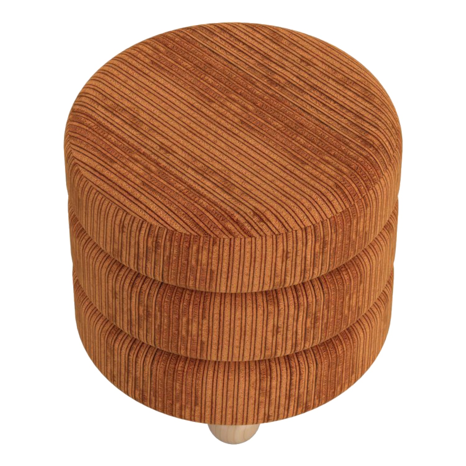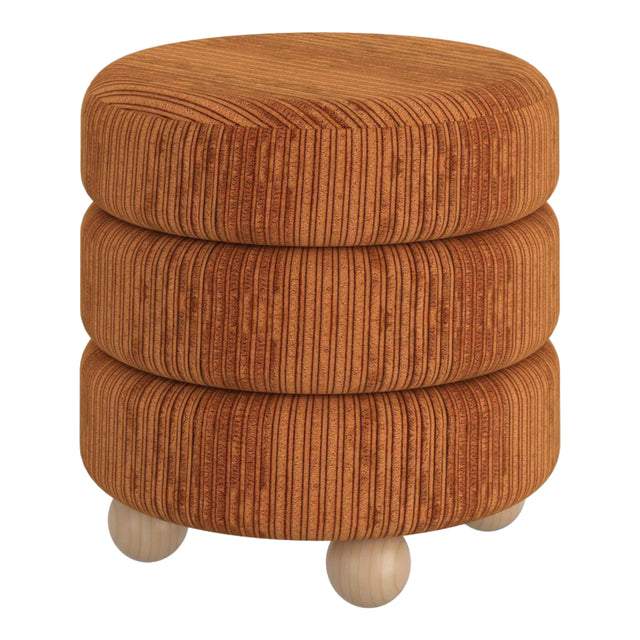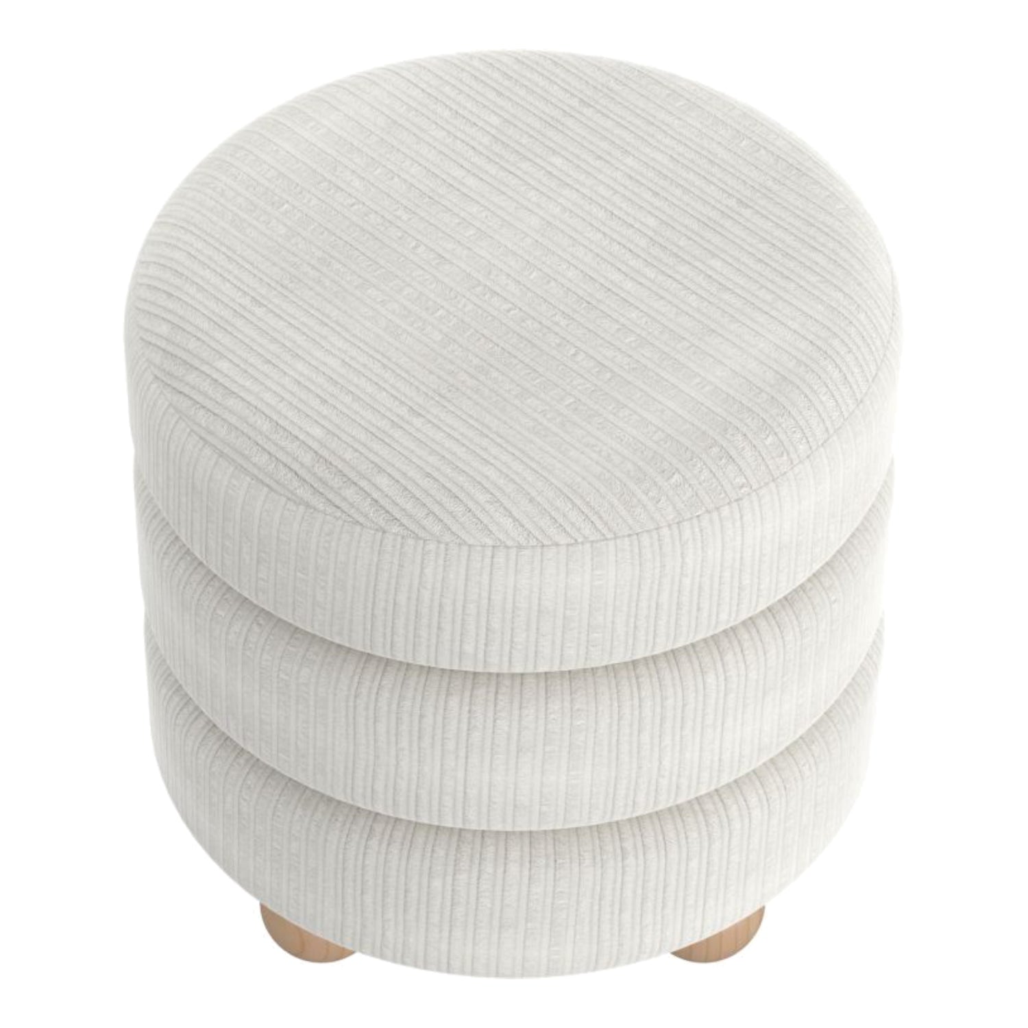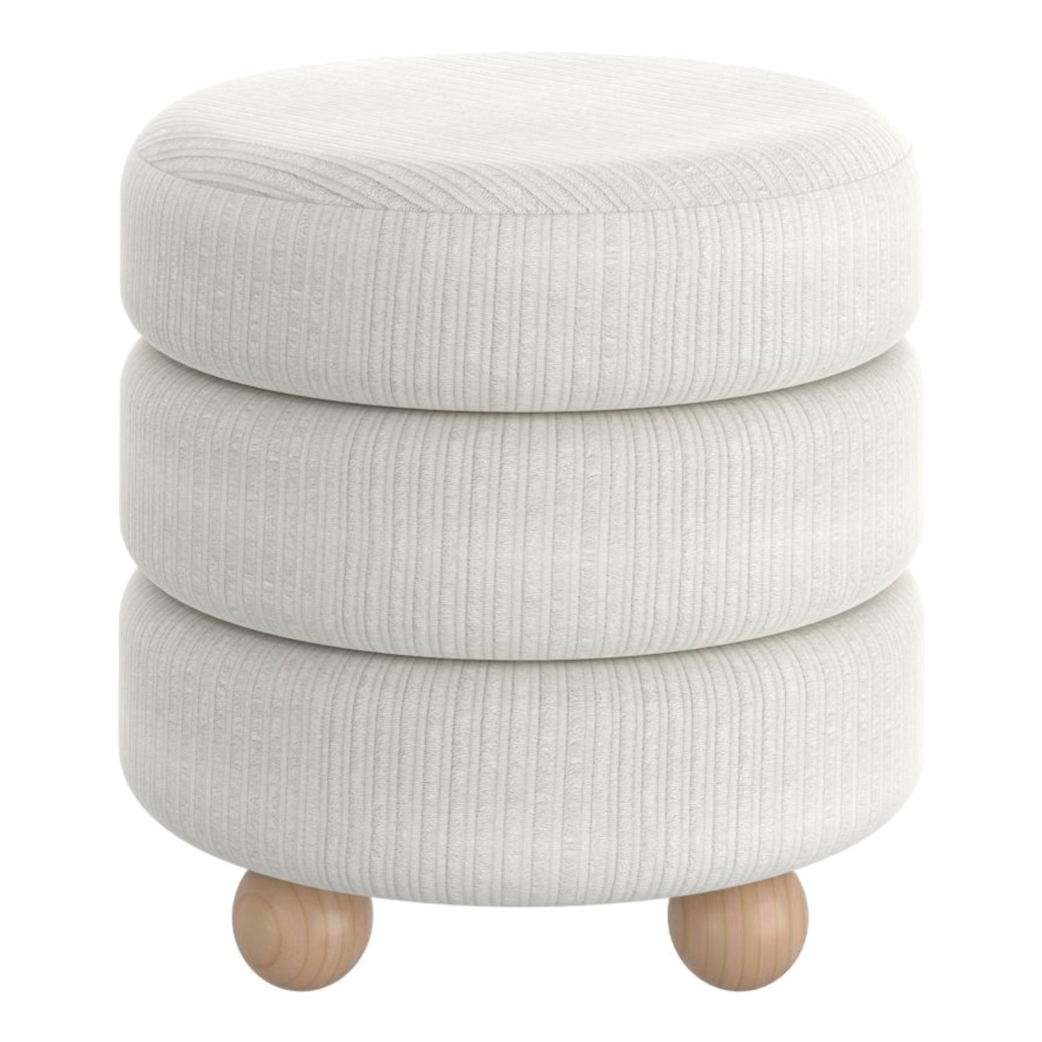 Pouf rond en tissu canalisé et bois naturel - Willo