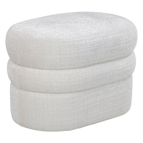 Pouf de rangement en tissu beige pâle et bois d'hévéa - Betsy