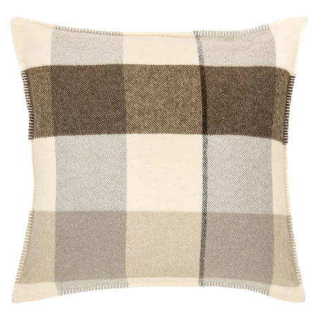 Coussin 18 x 18 po à carreaux en laine crème/brun/gris - Fudge