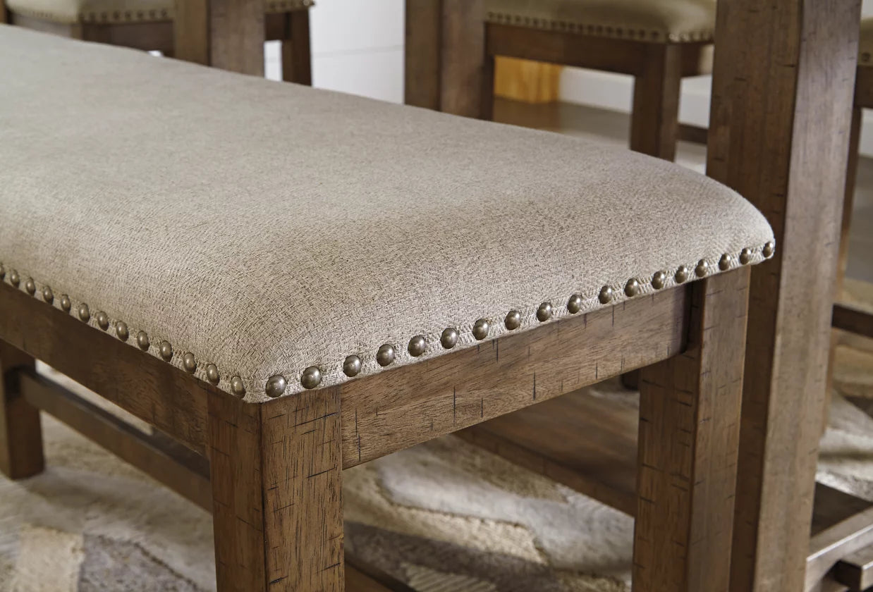 Avec une finition de muscade vieillie, une garniture de tête de clou vieillie et un revêtement en polyester texturé, Moriville rayonne de charme. Le siège rembourré garantit que les repas longs et persistants sont appréciés dans un confort total.