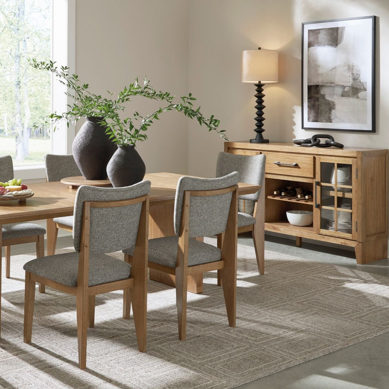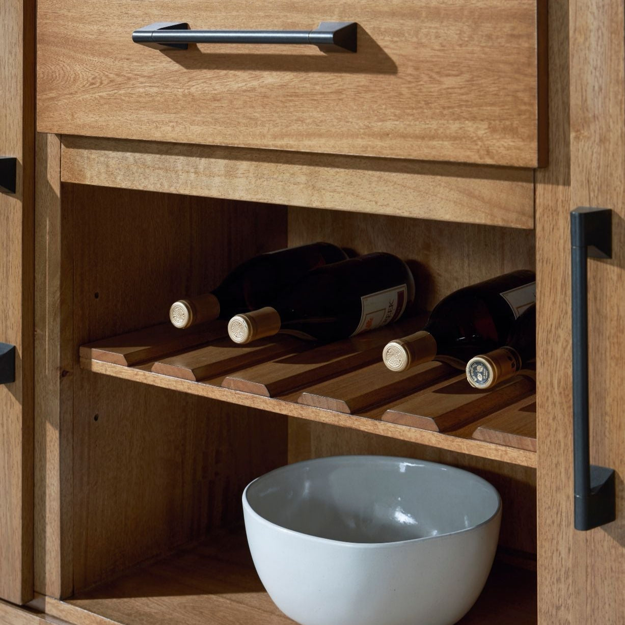 Parfait pour les intérieurs au style épuré, le buffet Sherbana D833-60 de Ashley allie sobriété esthétique et organisation intelligente. Son design linéaire intègre deux armoires à portes vitrées encadrées, chacune dotée d’une étagère réglable, une étagère centrale ouverte, un tiroir doublé de feutre, ainsi qu’un casier à vin réversible. Idéal pour ranger la vaisselle, les accessoires de service ou quelques bouteilles à portée de main, ce meuble élégant incarne une approche contemporaine du rangement pratique.
