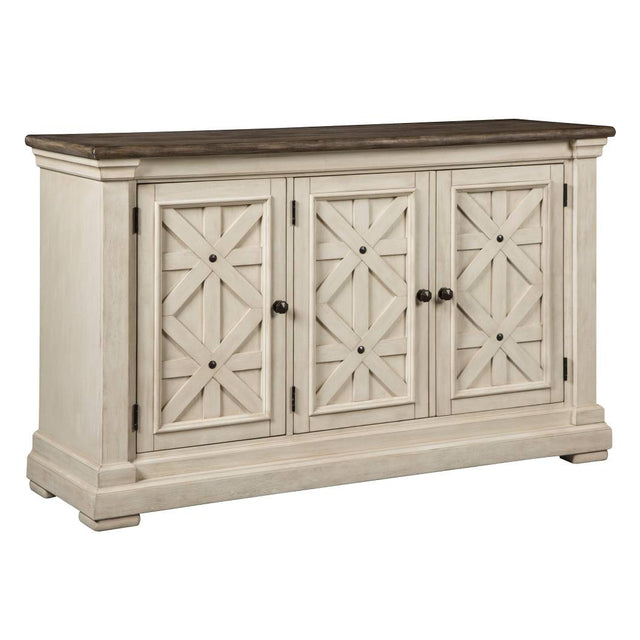 Alliant esthétique rustique et fonctionnalité pensée pour le quotidien, le buffet BOLANBURG D647-60 offre une solution de rangement élégante et intemporelle. Sa finition bicolore — plateau effet planches en chêne vieilli et base blanc antique légèrement usé — confère à cette pièce un caractère cottage vintage raffiné. Les trois portes grillagées au design aéré dissimulent quatre étagères réglables, offrant un espace modulable pour organiser votre vaisselle, vos nappes ou accessoires de service. Le dessus spacieux est idéal pour les buffets ou les présentations décoratives.