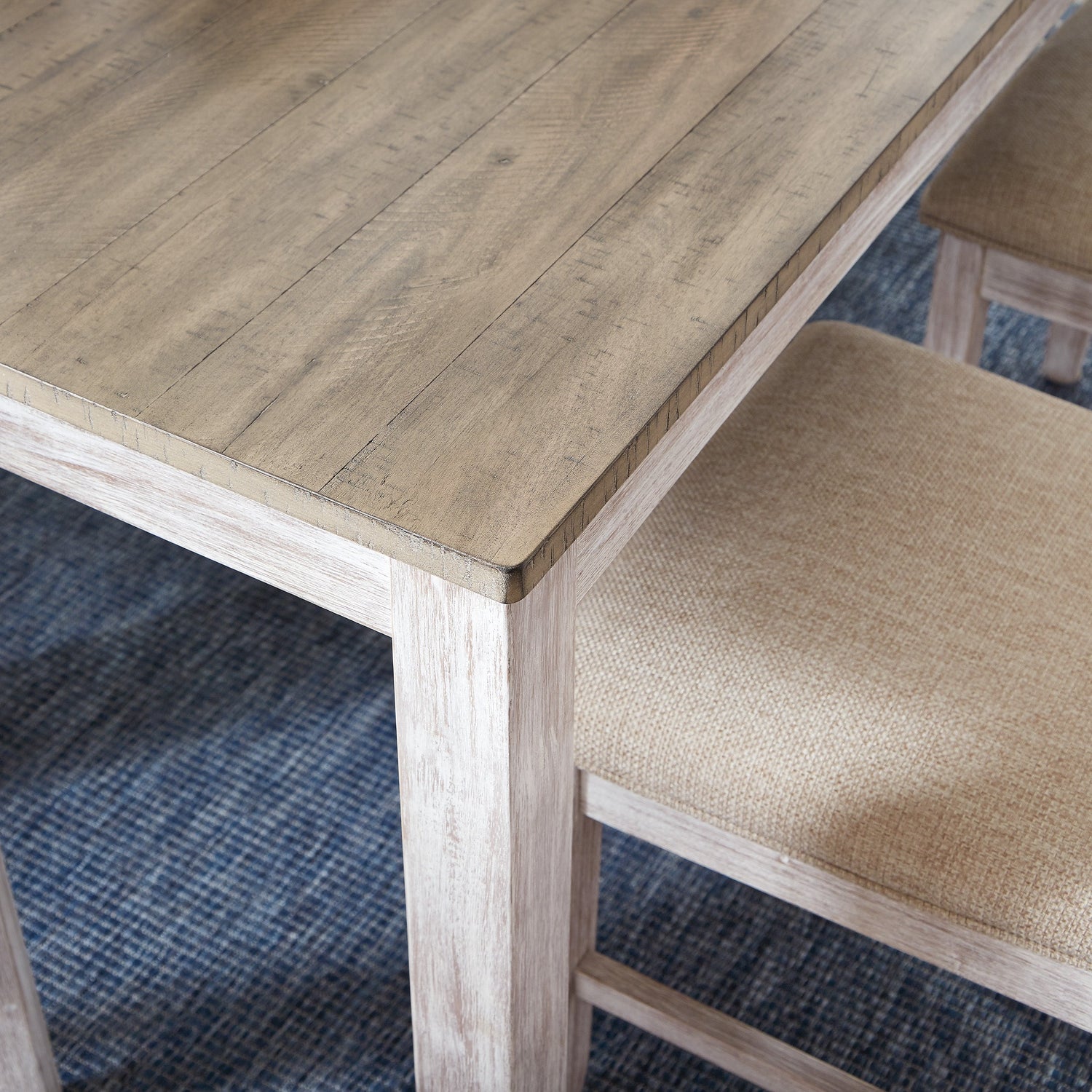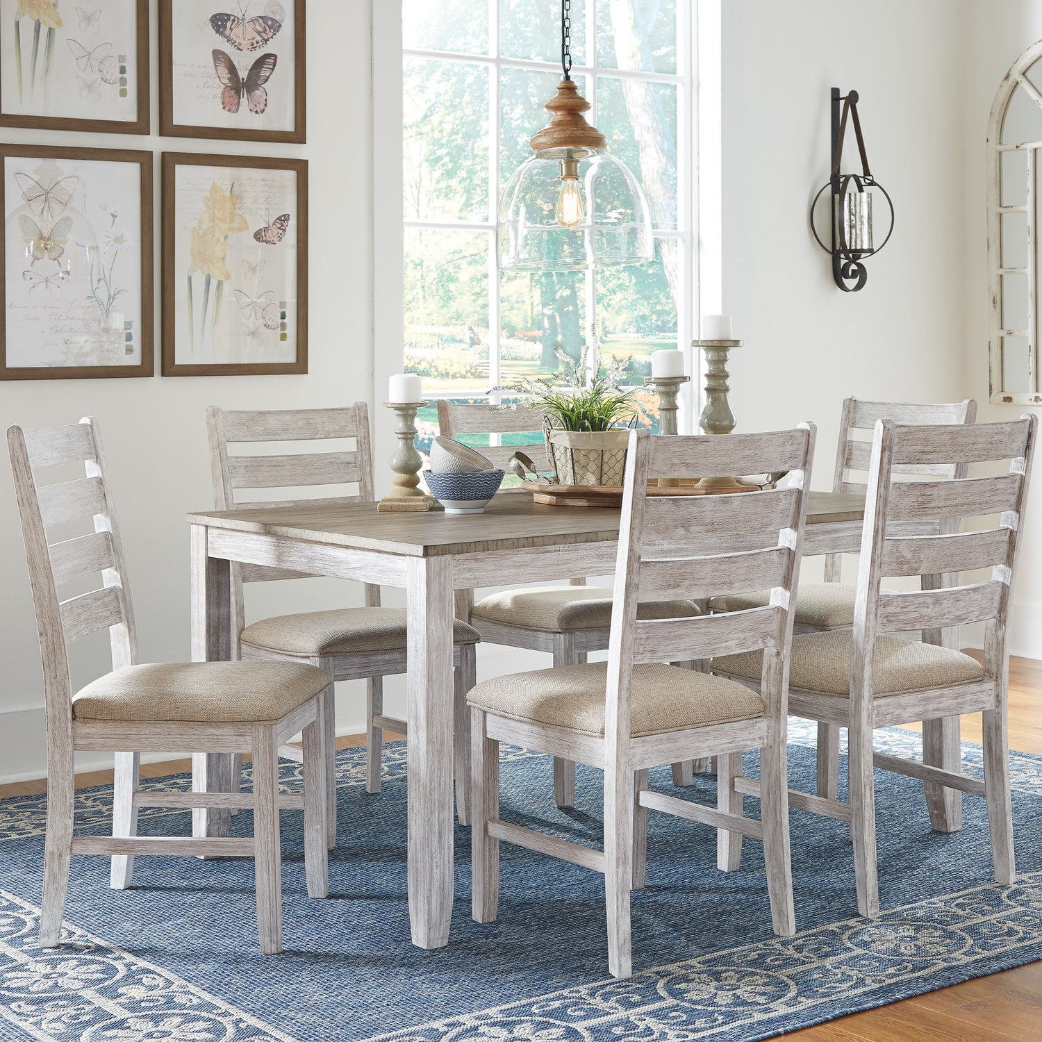 Conçu pour créer une atmosphère conviviale et chaleureuse, l’ensemble de salle à manger Skempton D394-425 de Ashley marie charme rustique et simplicité fonctionnelle. Sa table à plateau en bois avec pieds droits offre une silhouette épurée, tandis que la finition bicolore – dessus brun vieilli effet planches et base blanc grisâtre patinée – évoque un esprit bord de mer décontracté. Les chaises assorties au dossier échelle, au design classique, sont dotées d’une assise rembourrée confortable habillée d’un tissu clair.