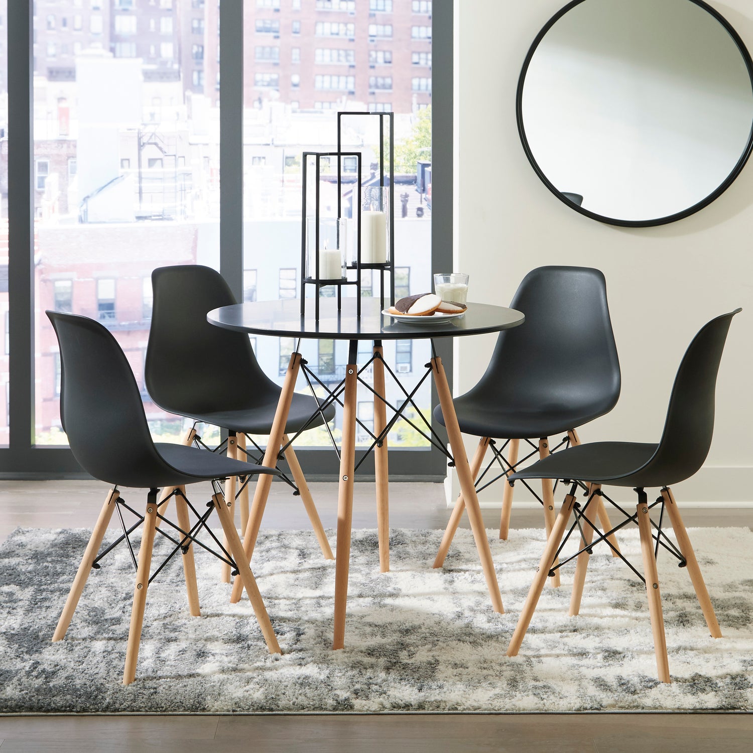 Cet ensemble de salle à manger Jaspeni D200-15/01x4 de Ashley incarne une réinterprétation contemporaine d’un style intemporel, parfait pour les intérieurs urbains ou les petits espaces. Composé d’une table ronde de 32 pouces et de quatre chaises, il combine fonctionnalité et esthétique avec une élégance minimaliste. Le contraste entre le noir profond du plateau et des assises, et la chaleur naturelle du bois de hêtre crée un équilibre visuel raffiné. Cet ensemble compact et artistique s’intègre aisément dans les cuisines, coins repas ou studios au style moderne affirmé.