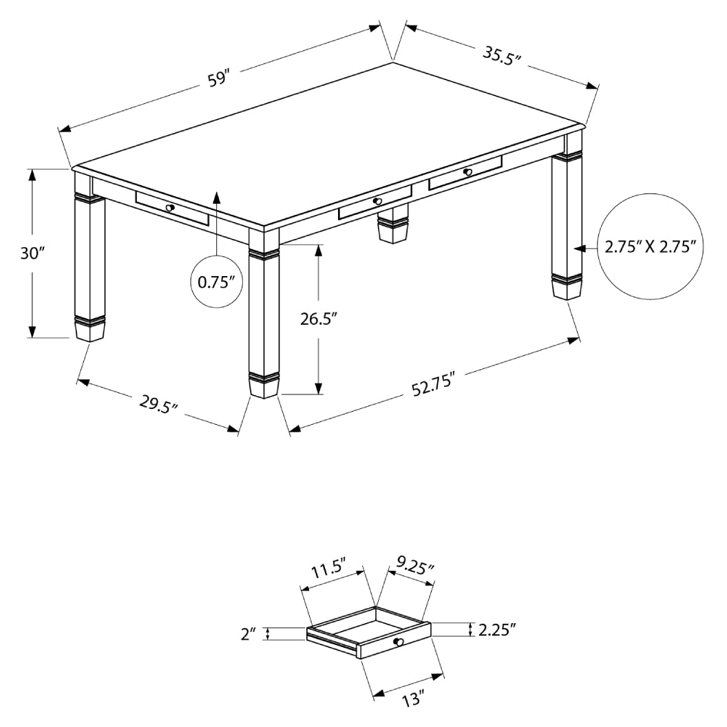 La table à manger I 1255 de Monarch séduit par son style transitionnel élégant et sa finition gris antique tendance. Son format rectangulaire de 60 pouces est idéal pour les repas décontractés en famille. Conçue pour accueillir jusqu’à six personnes, elle s’intègre parfaitement dans une cuisine ou une salle à manger conviviale. Ses tiroirs intégrés ajoutent une dimension pratique sans compromettre l’esthétique.