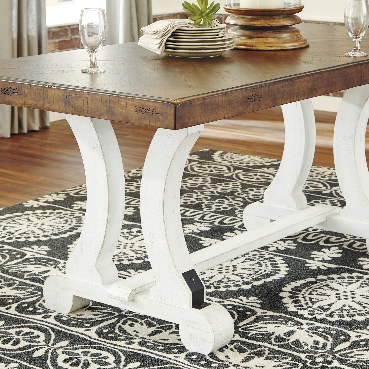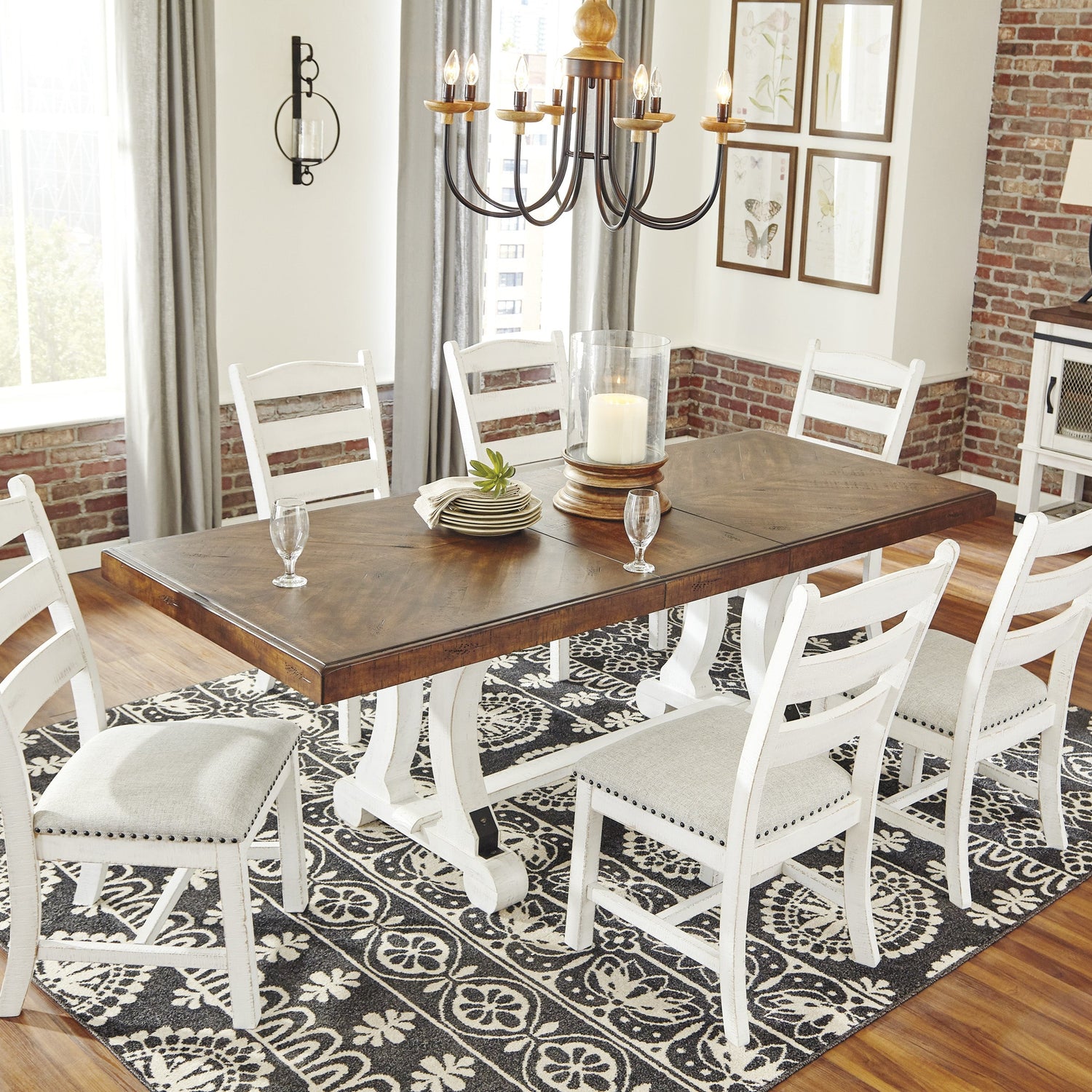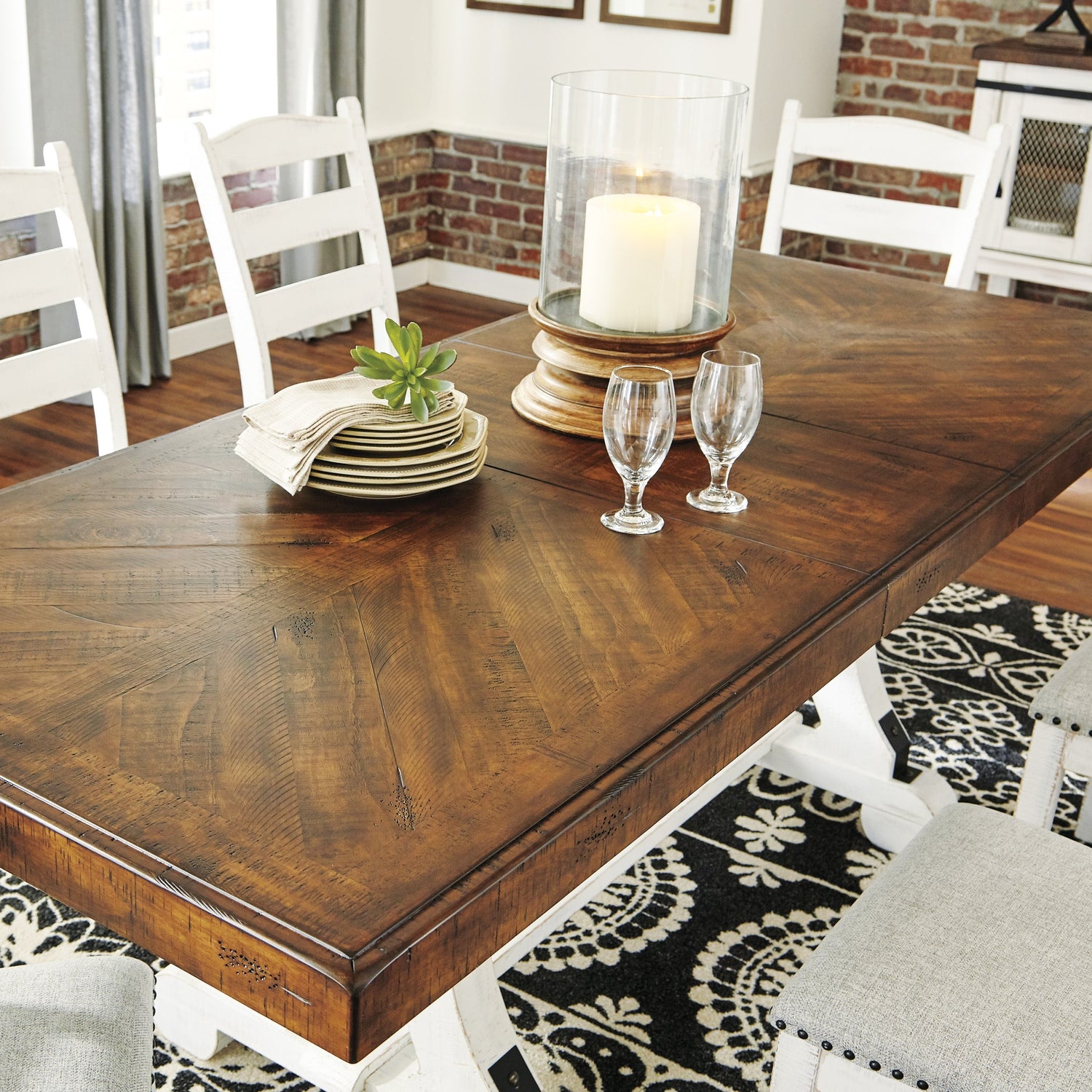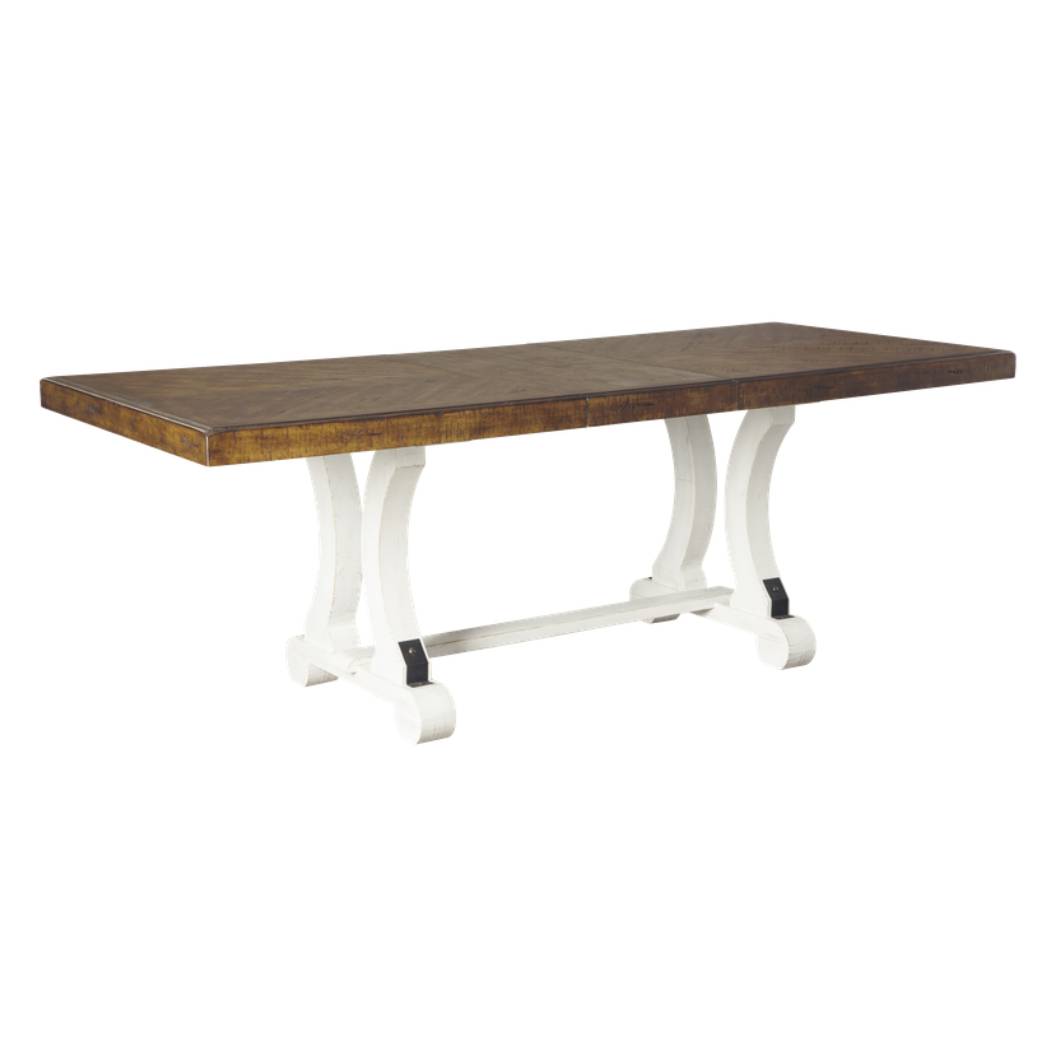 Inspirée de l’esthétique rustique des maisons de campagne, la table à manger Valebeck de Ashley incarne le charme de la vie décontractée avec une touche raffinée. Sa finition bicolore patinée allie un plateau brun riche à une base blanche vintage, créant un contraste visuel saisissant. Dotée d’un bord extra épais et d’un placage en marqueterie façon livre, cette table d’extension offre une signature artisanale distinctive. Elle s’adapte facilement à vos besoins grâce à son système d’allonge par tirage latéral, parfait pour accueillir famille et invités avec style.