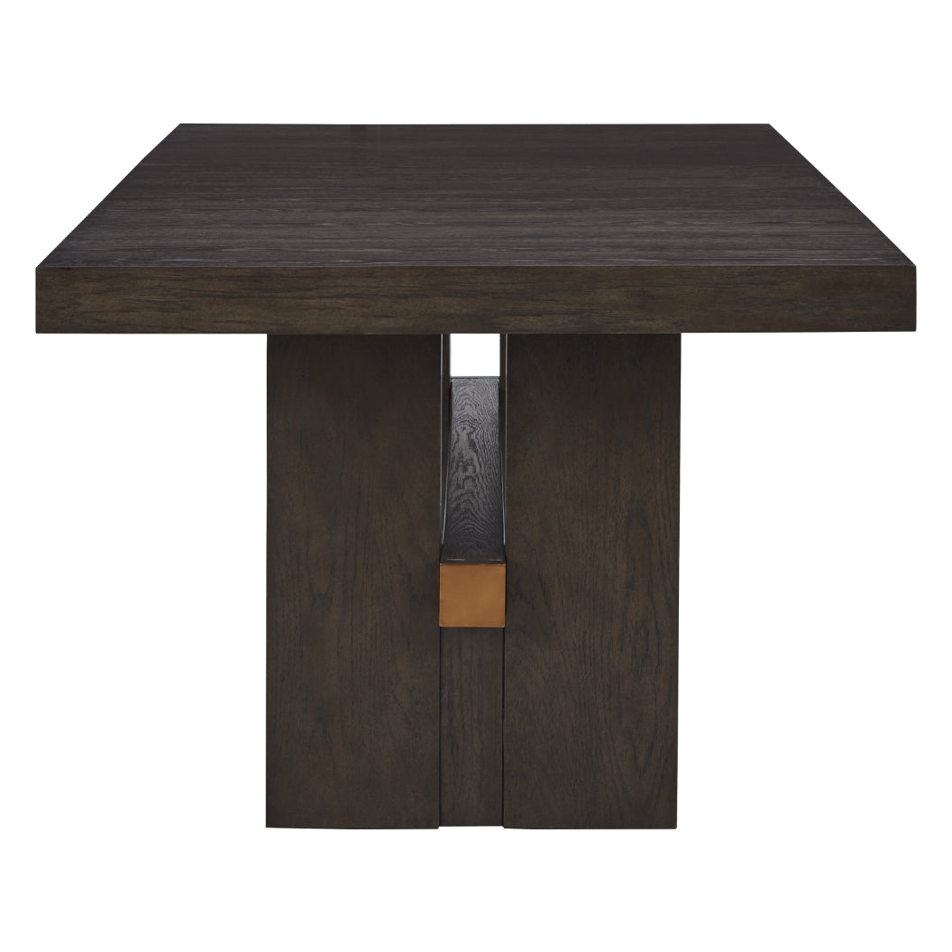 Pensée pour allier sophistication et accessibilité, la table de salle à manger Burkhaus D984-45 de Ashley séduit par son design moderne aux lignes nettes et sa finition chêne brun ciré foncé. Son plateau rectangulaire à rebord épais repose sur une base à double piédestal qui lui confère à la fois stabilité et prestance. Le vantail central amovible permet d’adapter facilement la longueur de la table selon les besoins, qu’il s’agisse d’un repas familial ou d’une réception festive.
